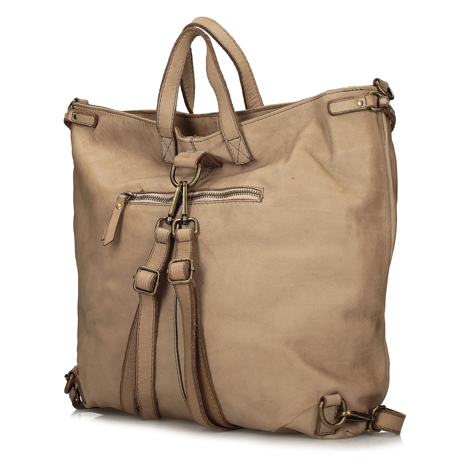 Torebka z funkcją plecaka marki Toscanio to doskonałe rozwiązanie dla kobiet, które cenią sobie wygodę, ale nie chcą rezygnować ze stylu. Wykonana z miękkiej, licowej skóry naturalnej o delikatnym, spranym wykończeniu, przyciąga uwagę subtelnym beżowym odcieniem i nonszalanckim charakterem. Jej pojemny fason z łatwością pomieści format A4, co czyni ją idealną zarówno na co dzień, jak i do pracy. Złote detale oraz suwak dodają elegancji, a możliwość noszenia jej na ramieniu lub jako plecak sprawia, że świetnie sprawdzi się w różnych sytuacjach. Wnętrze wyściełane tkaniną skrywa praktyczne kieszenie, które pomogą w utrzymaniu porządku. Uniwersalna i funkcjonalna – będzie stylowym dodatkiem na wiele sezonów.