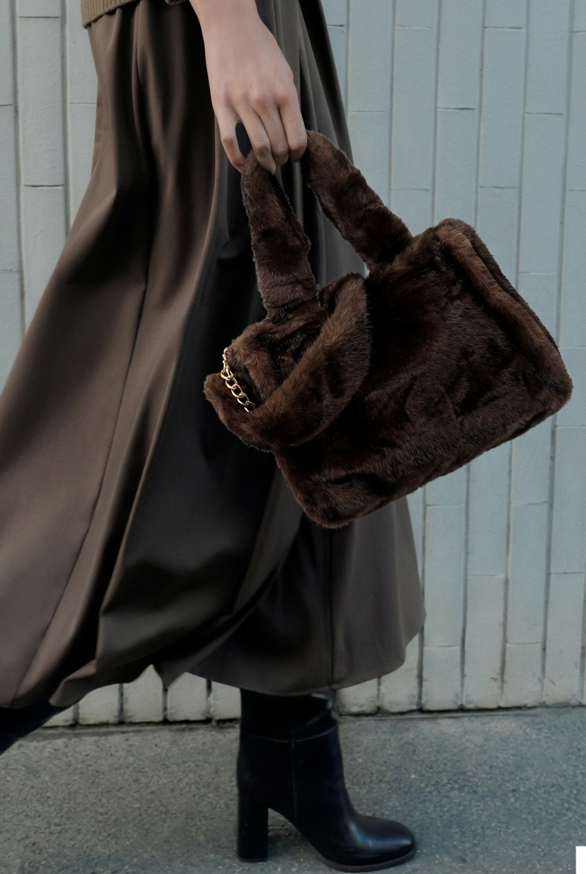 Brązowa listonoszka Toscanio to modny i wyjątkowo miękki model wykonany ze sztucznego futra, który zachwyca przytulną strukturą i nowoczesnym stylem. Torebka ma bardziej prostokątny, uporządkowany kształt niż klasyczny worek, ale pozostaje elastyczna i miękka, dzięki czemu pięknie układa się podczas noszenia.