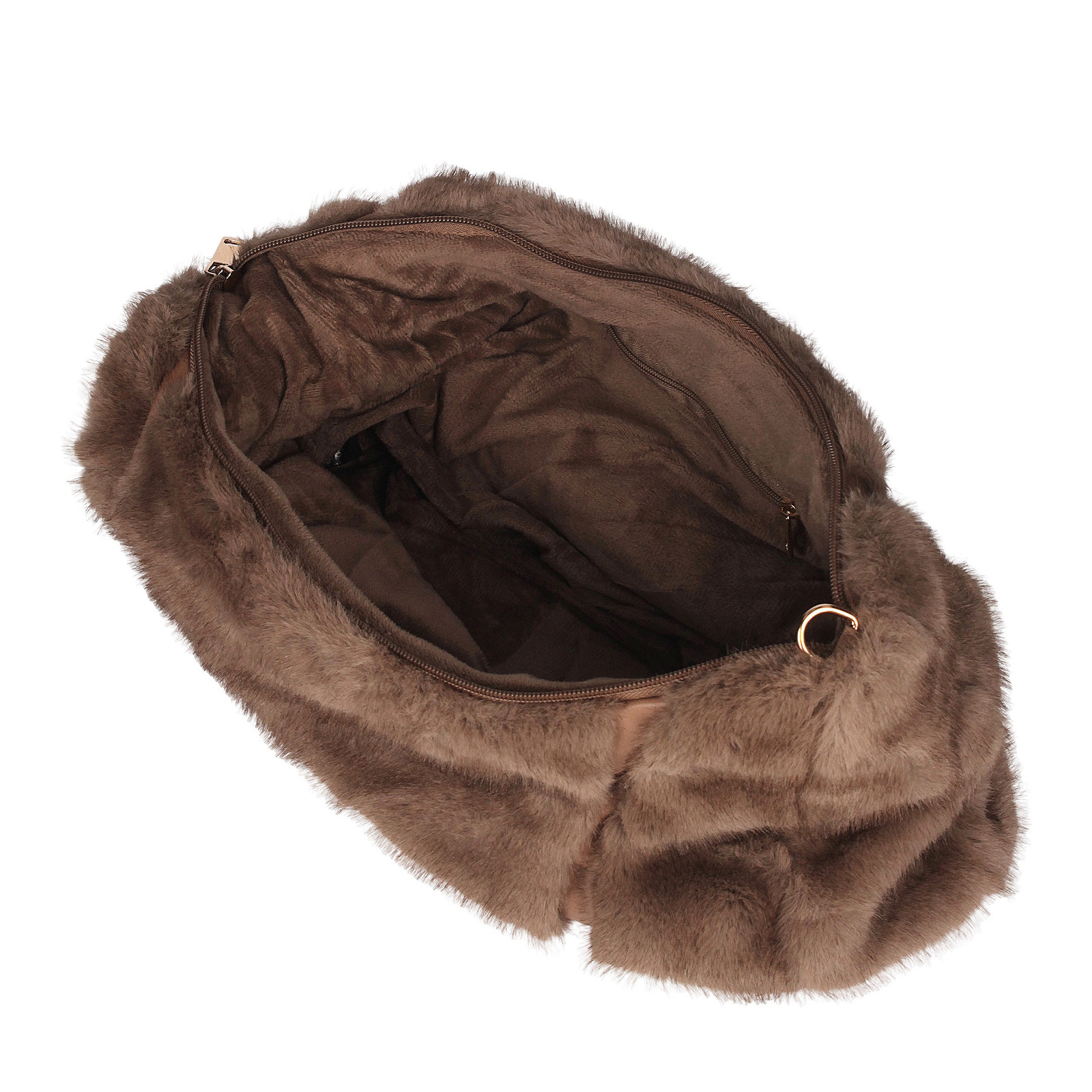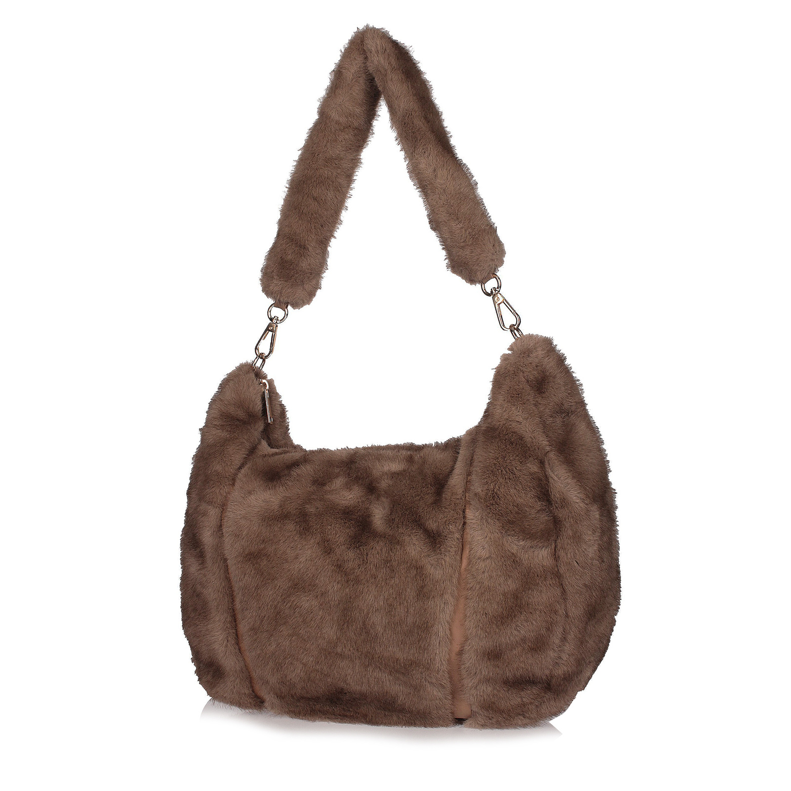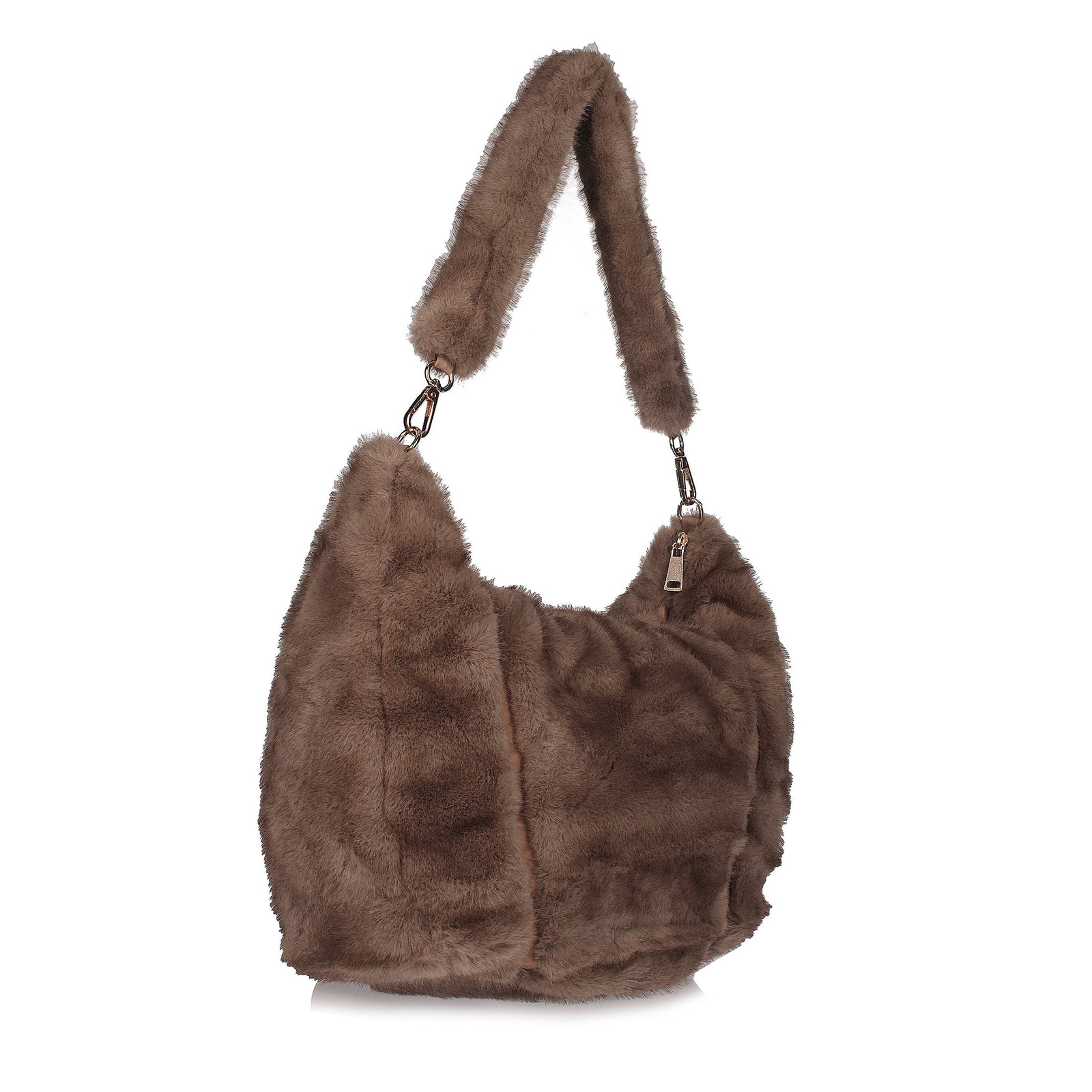 Beżowa torebka worek Toscanio to miękki, przytulny model, który łączy modowy charakter z wygodą na co dzień. Wykonana ze sztucznego futra o puszystej, przyjemnej w dotyku strukturze, wyróżnia się efektownym wyglądem i nietypowym wykończeniem. Utrzymana w ciepłym beżowym odcieniu, dodaje stylizacjom miękkości i jesienno-zimowego klimatu.