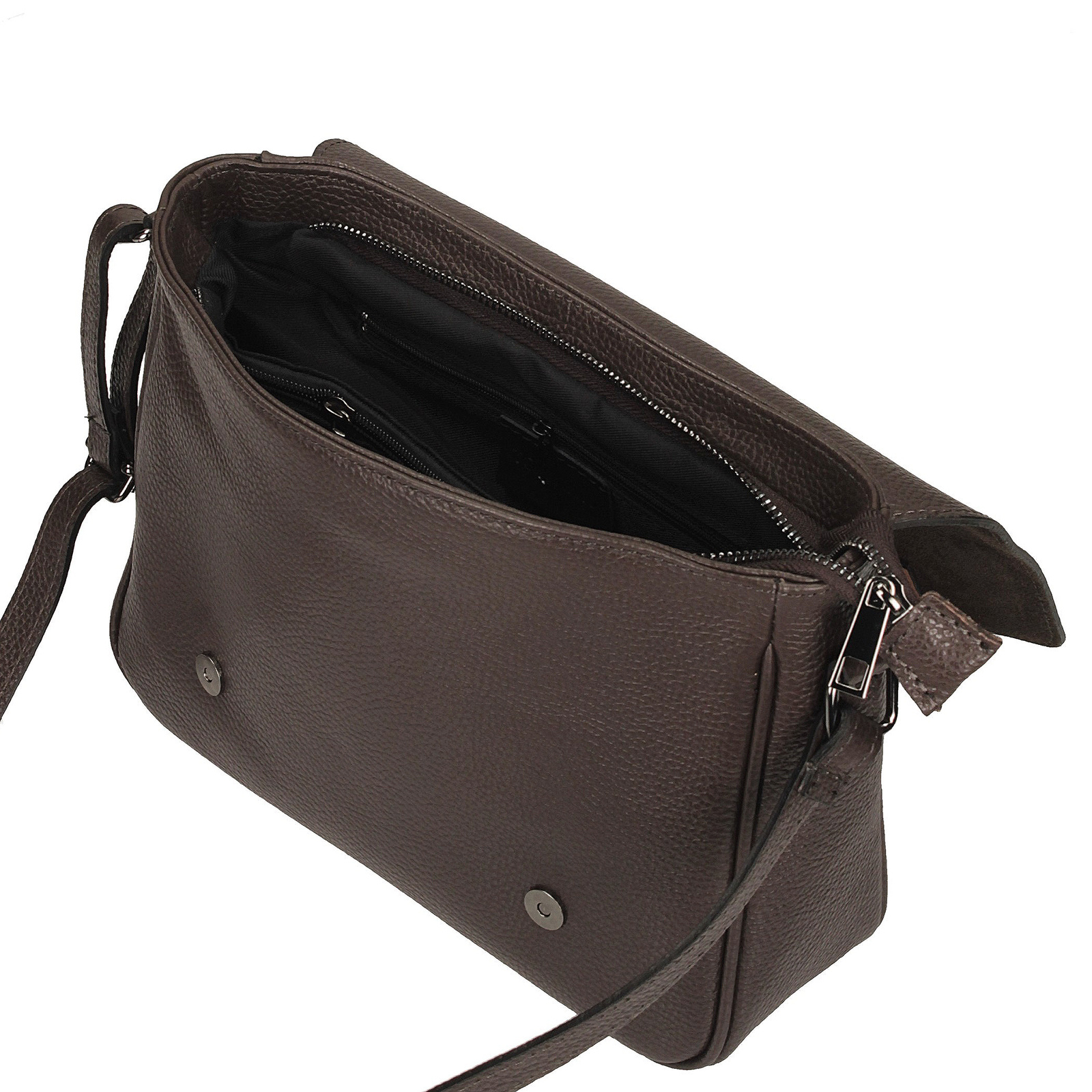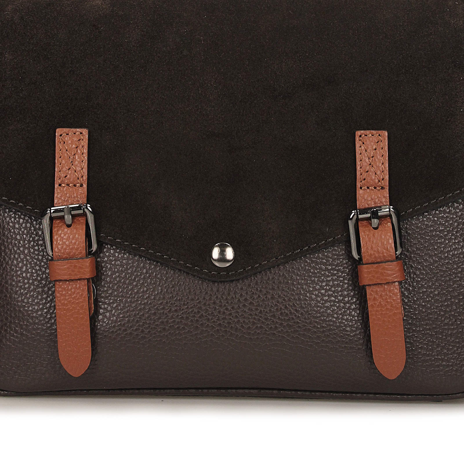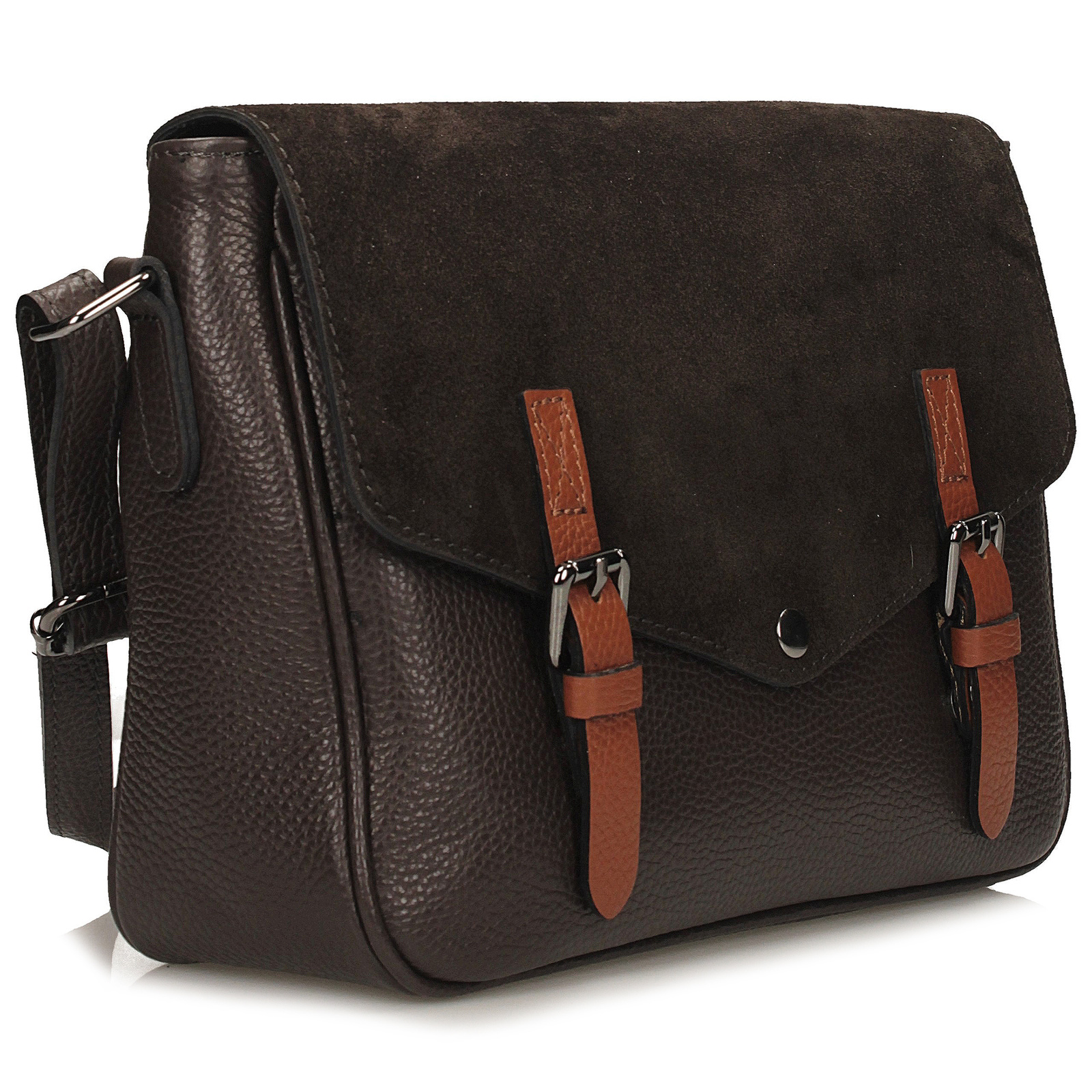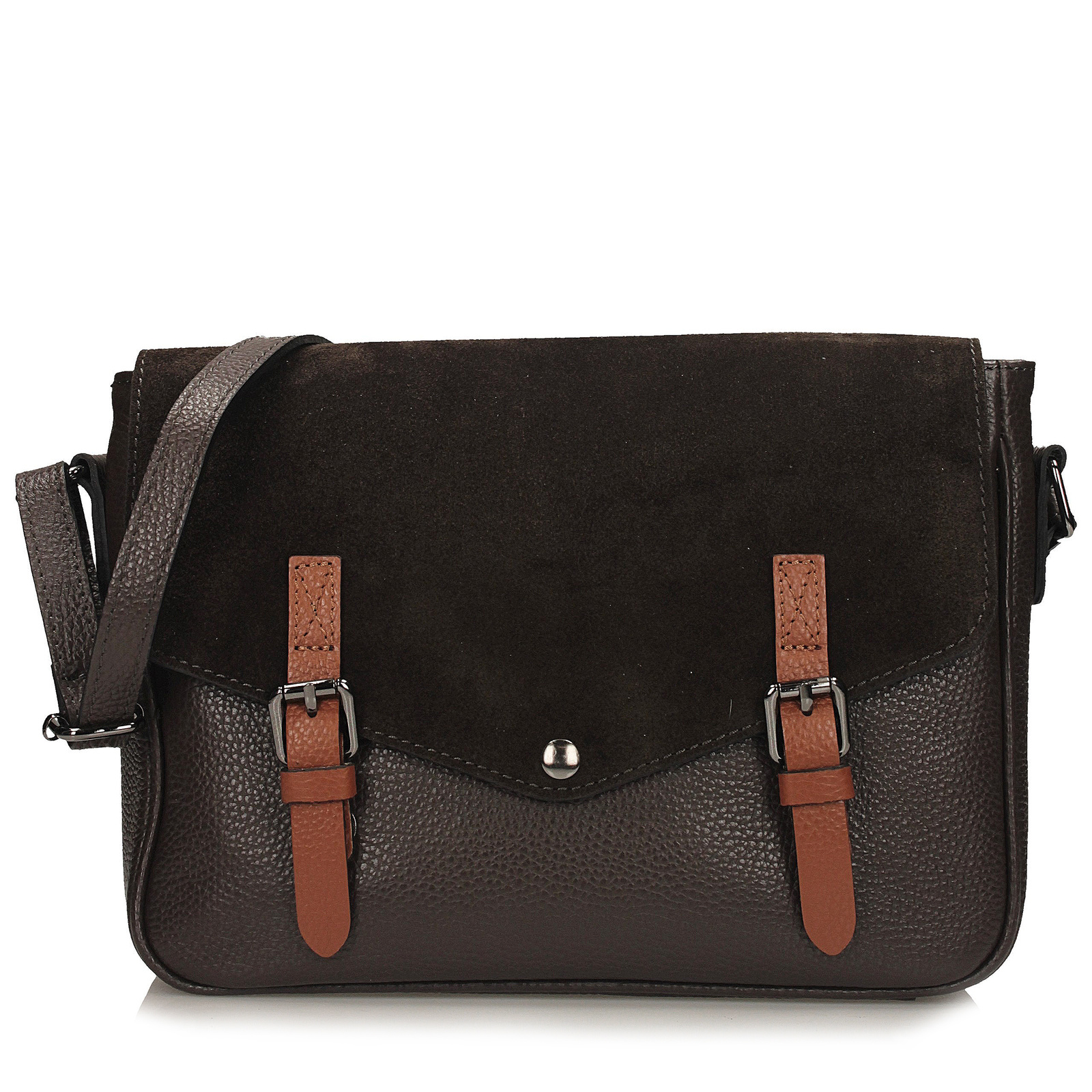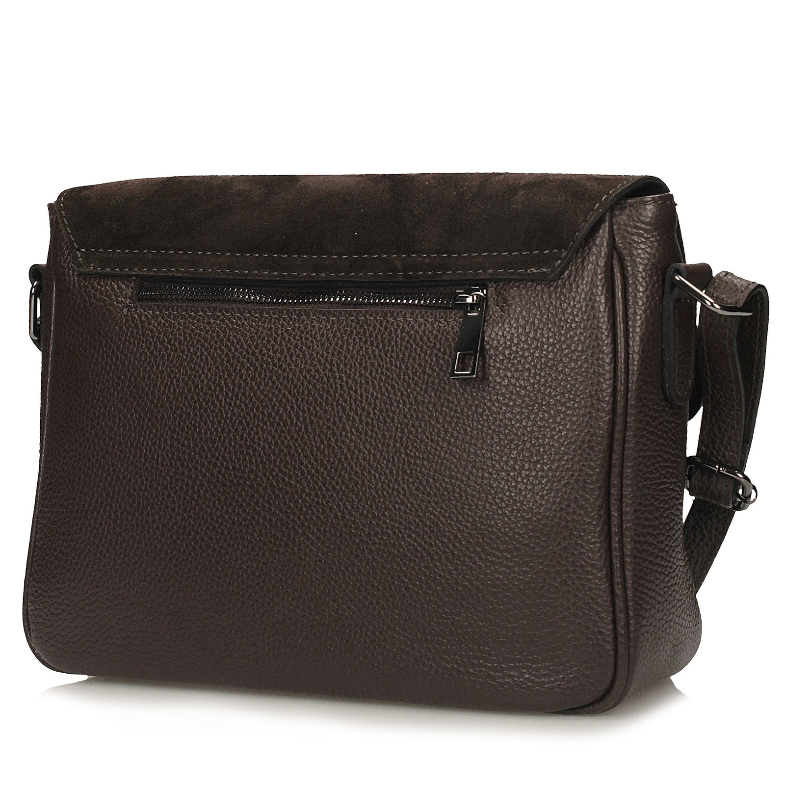 Torebka wykonana z naturalnej, groszkowej skóry, ze wstawką ze skóry zamszowej, wyposażona w