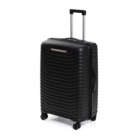 Czarna walizka podróżna wykonana z wytrzymałego polipropylenu to doskonały wybór dla osób, które cenią lekkość, trwałość i wygodę podczas wyjazdów. Dzięki twardej konstrukcji skutecznie chroni zawartość.