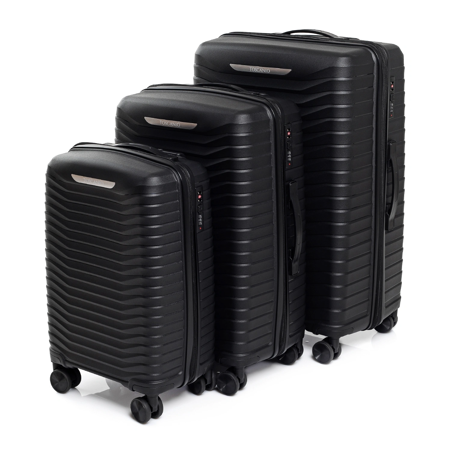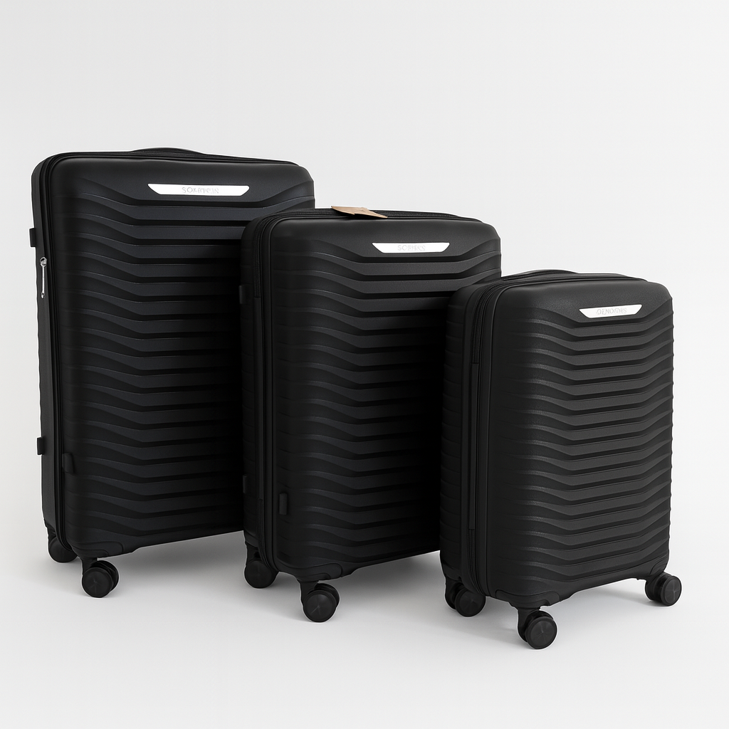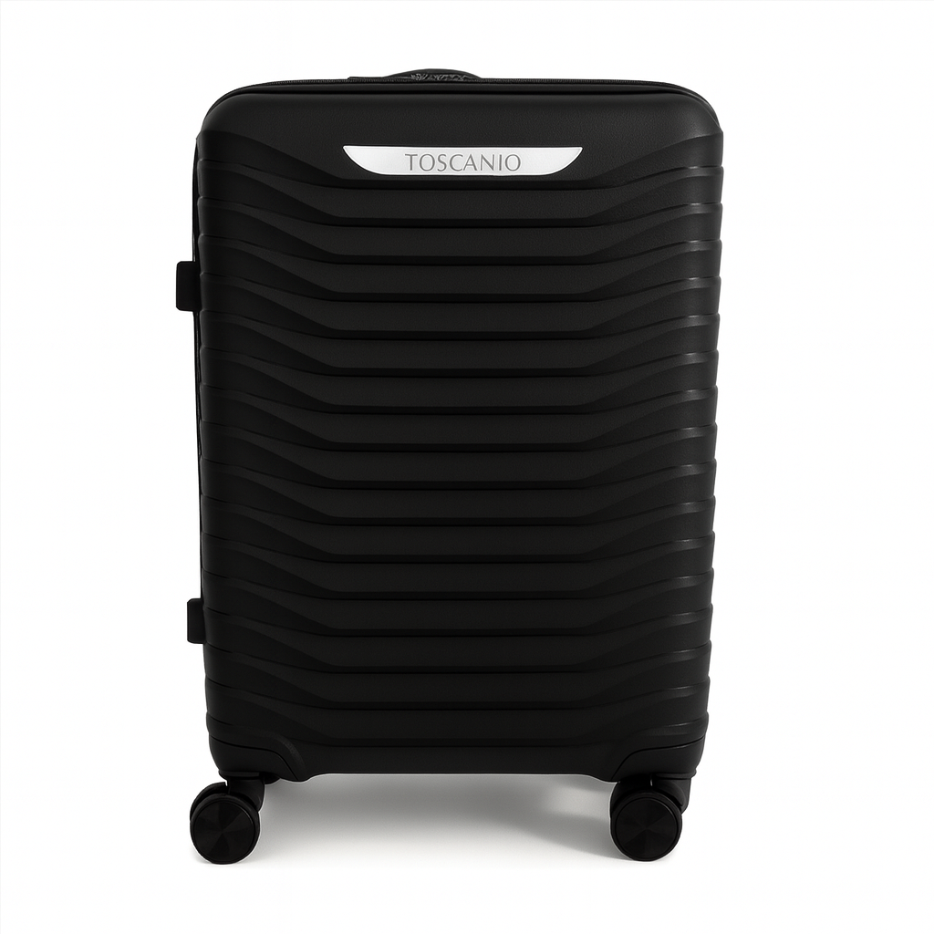 Czarna walizka podróżna wykonana z wytrzymałego polipropylenu to doskonały wybór dla osób, które cenią lekkość, trwałość i wygodę podczas wyjazdów. Dzięki twardej konstrukcji skutecznie chroni zawartość.