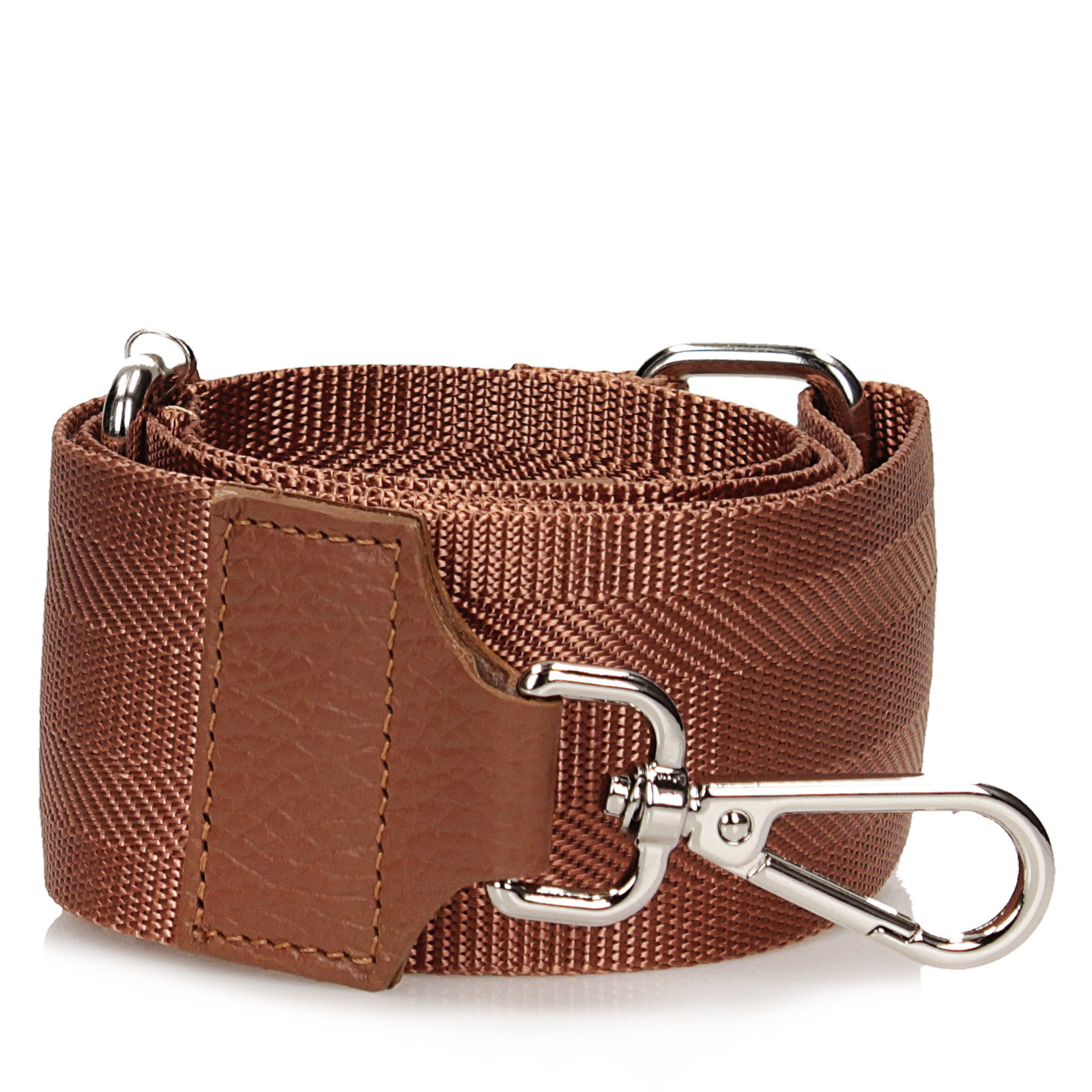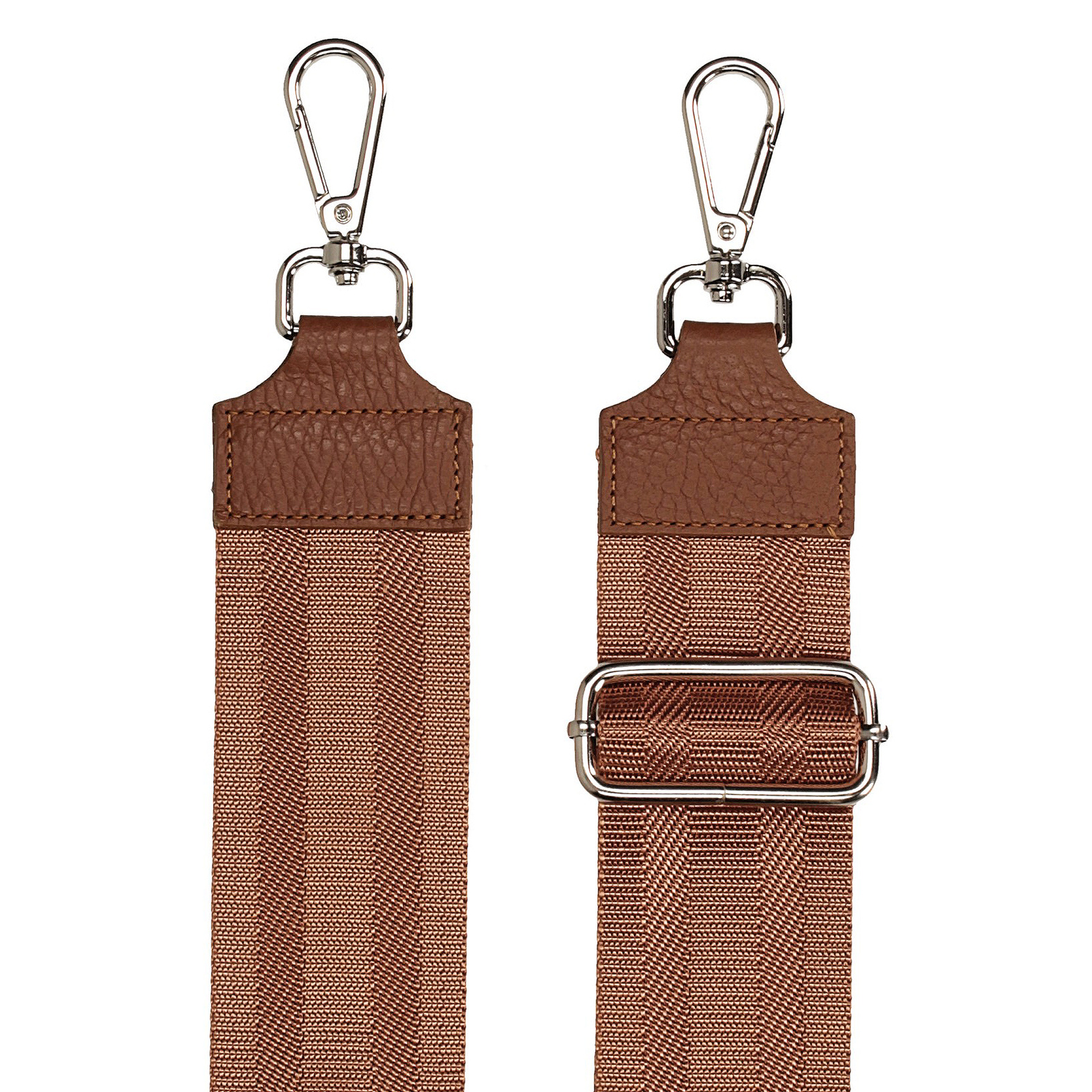 Wymienny pasek do torebki marki Toscanio w ciepłym rudym odcieniu, wykonany z wytrzymałej tkaniny o szerokości 5 cm. Model o długości 129 cm wyposażony jest w metalowe zapięcia w kolorze srebrnym, które umożliwiają łatwe dopięcie do większości torebek. Dzięki uniwersalnemu charakterowi i intensywnemu kolorowi świetnie sprawdzi się jako stylowy akcent w codziennych stylizacjach.