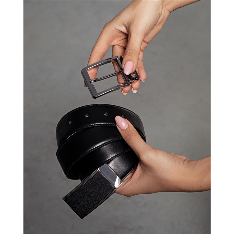 Oferujemy elegancki zestaw skórzany składający się z paska w kolorze czarnym oraz dwóch wymiennych klamr, który pozwala na szybkie dopasowanie stylizacji do różnych okazji. Wykonany z wysokiej jakości naturalnej skóry, pasek zapewnia trwałość oraz komfort noszenia przez długi czas. Wymienne klamry pozwalają na łatwą personalizację, dzięki czemu można je dopasować do indywidualnych preferencji i zmieniających się trendów.