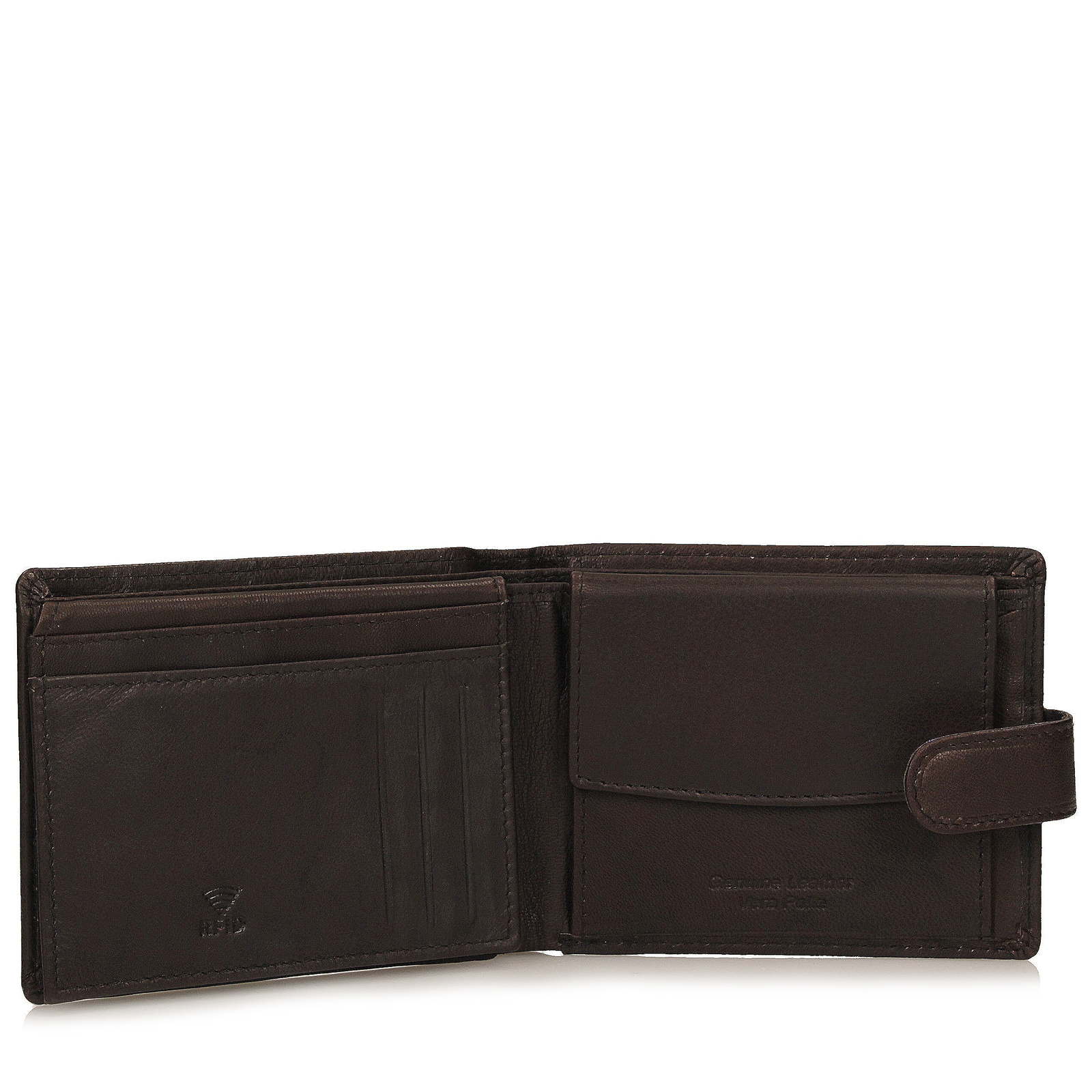 Męski portfel wykonany z naturalnej, włoskiej skóry, zamykany za pomocą paska z klipsem,