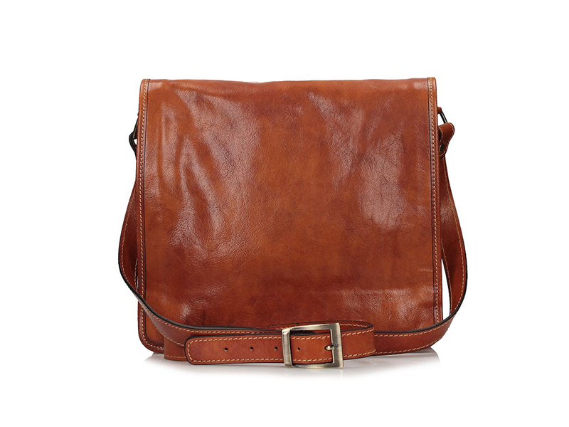 Męska listonoszka wykonana z solidnej, naturalnej skóry, wyposażona w jedną główną komorę zapinana
