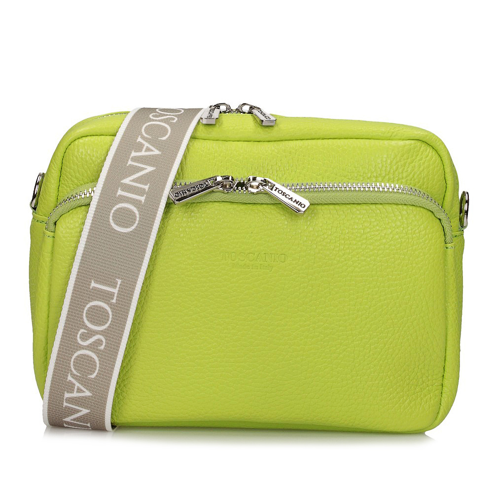 Klasyczna listonoszka wykonana z naturalnej, groszkowej skóry, wyposażona w jedną główną