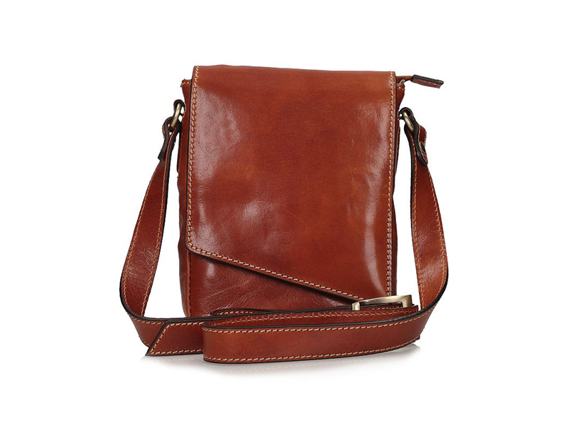 Męska torebka wykonana z naturalnej, włoskiej skóry, wyposażona w jedną główną komorę zapinaną za