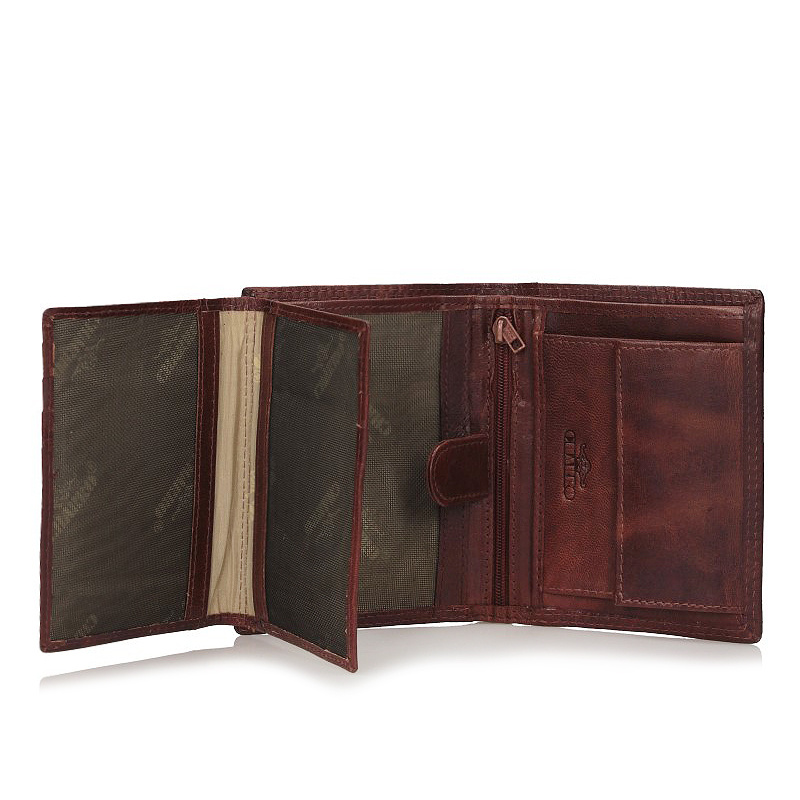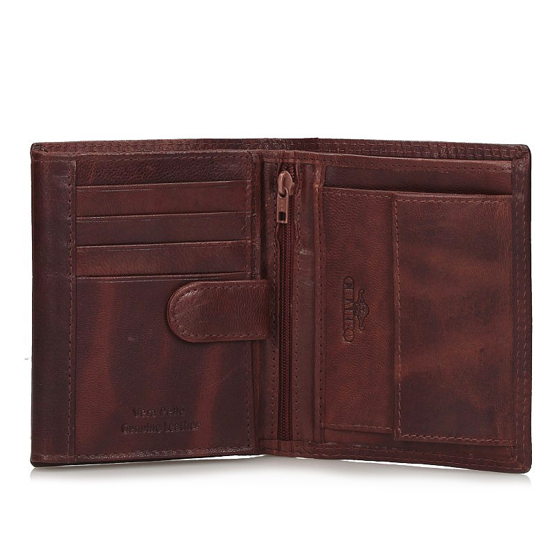 Męski portfel wykonany z naturalnej skóry, wewnątrz wyposażony w dodatkowe dwie zakładki