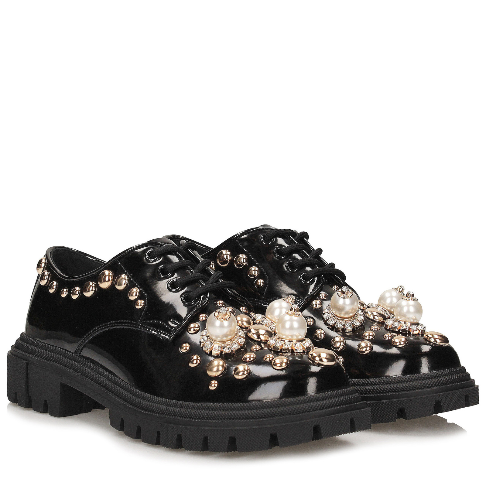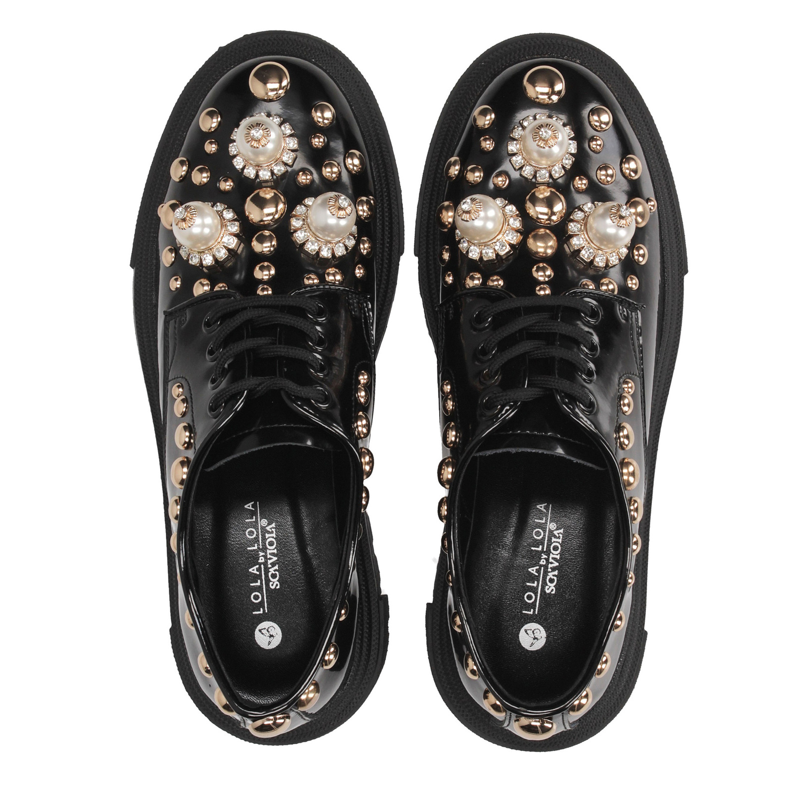 Wyjątkowe, oryginalne półbuty marki Sca'viola, w tej interpretacji tak lubianych oxfordów klasykę dopełniono modnymi dżetami, okraszonymi złotem perłami oraz kryształami.