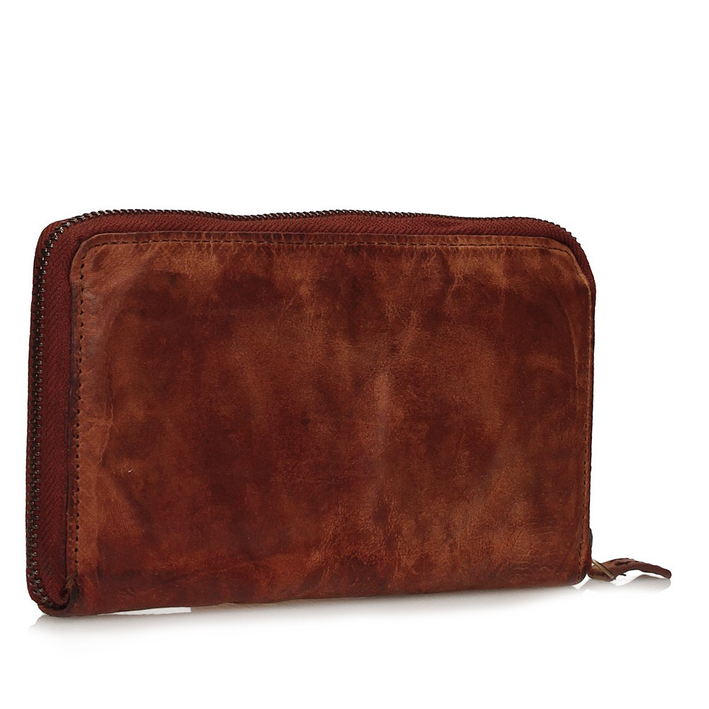 Saszetka wykonana z naturalnej, włoskiej skóry, w środku zawierającą przegródki na karty, banknoty oraz zapinaną kieszonkę służącą