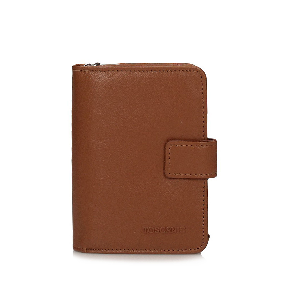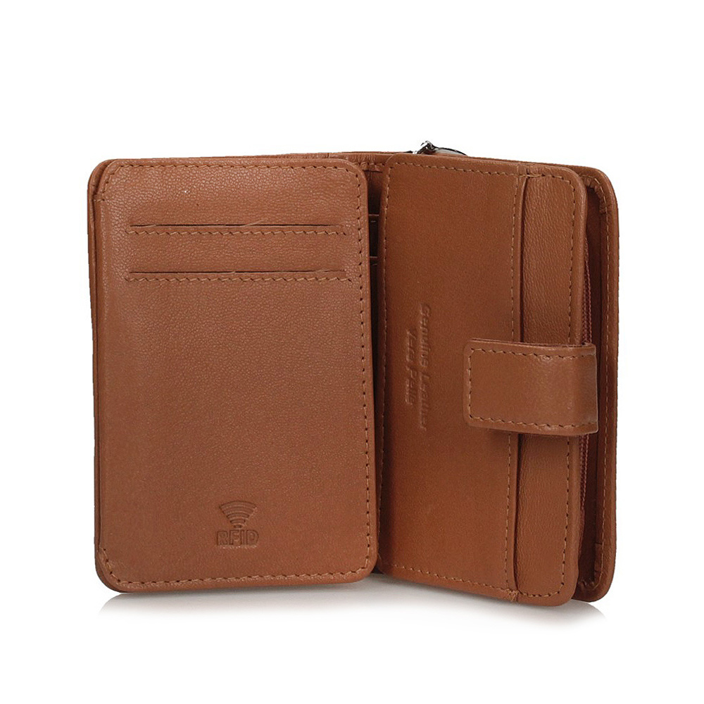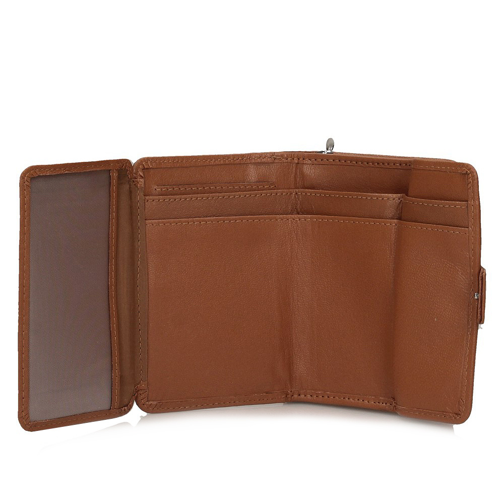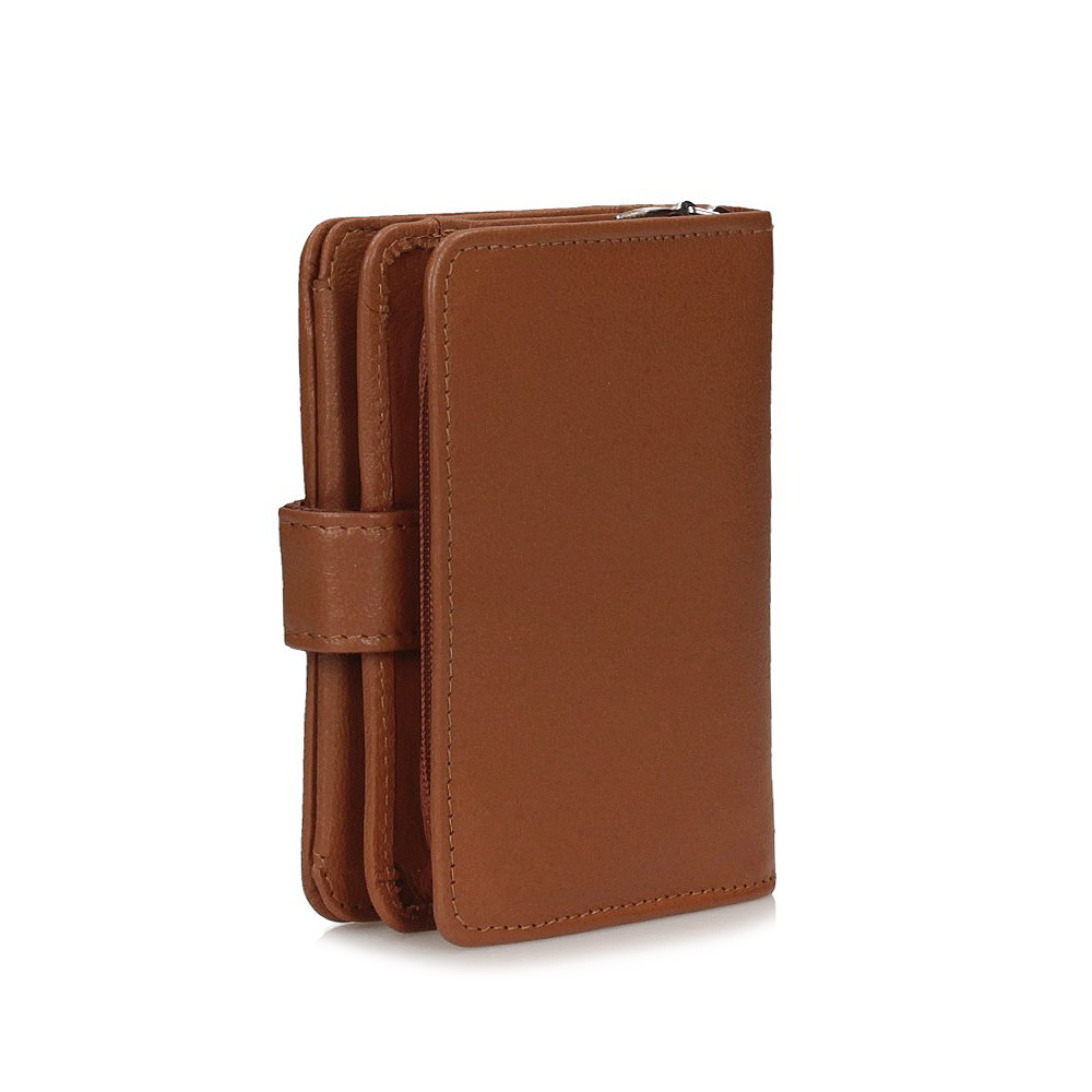 Portfel wykonany z naturalnej, włoskiej skóry, wyposażony w dwie części, jedna z nich zamykana za