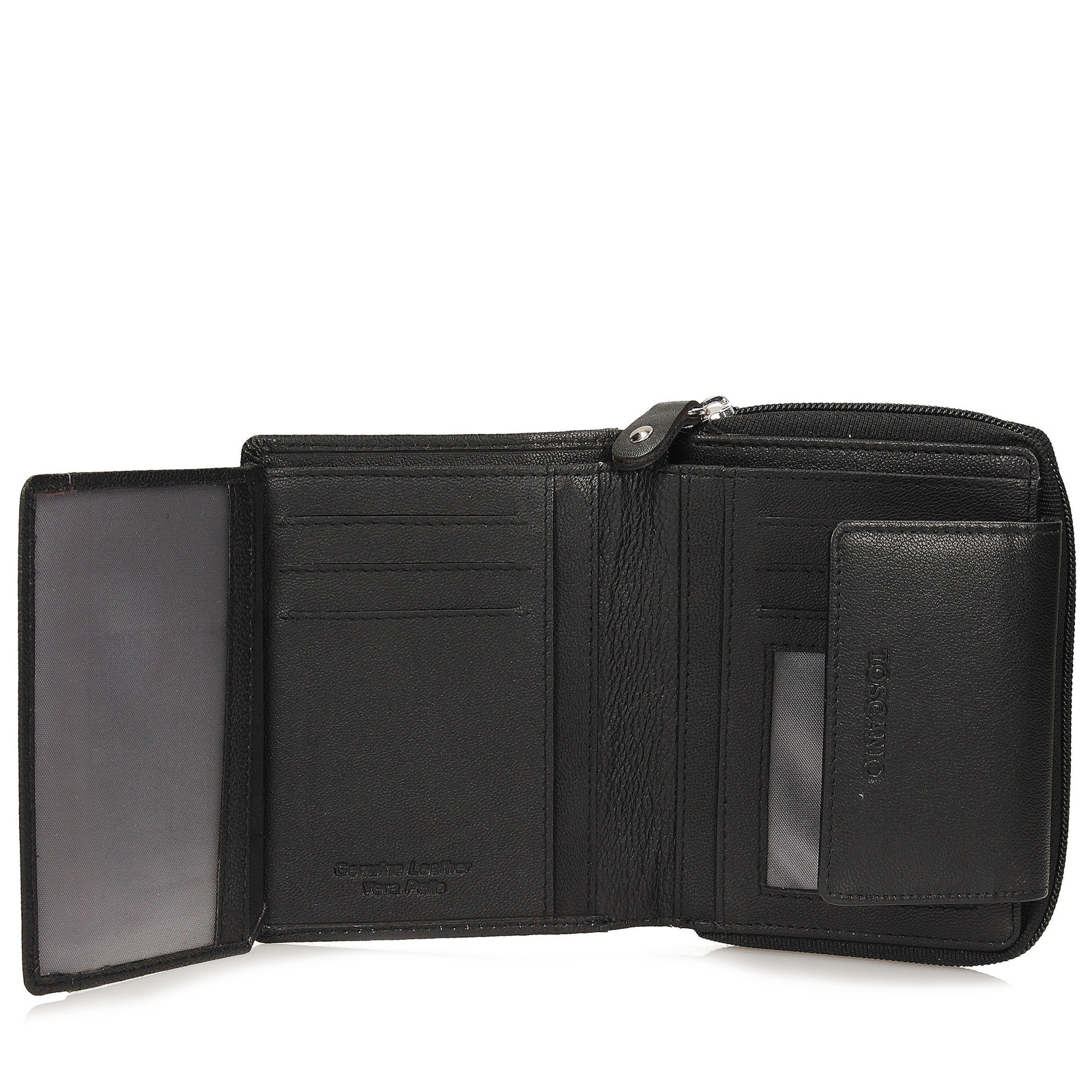 Portfel wykonany z naturalnej, włoskiej skóry, wyposażony w dwie główne komory, jedna z nich