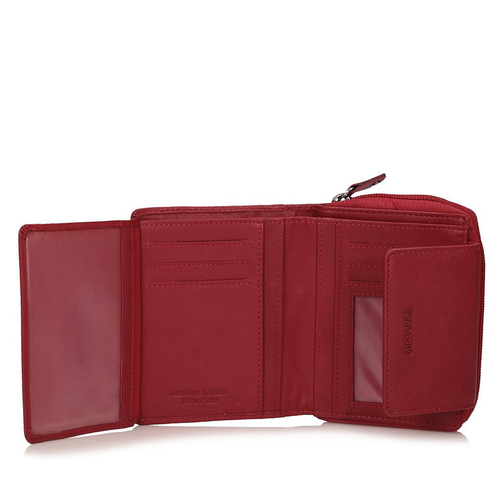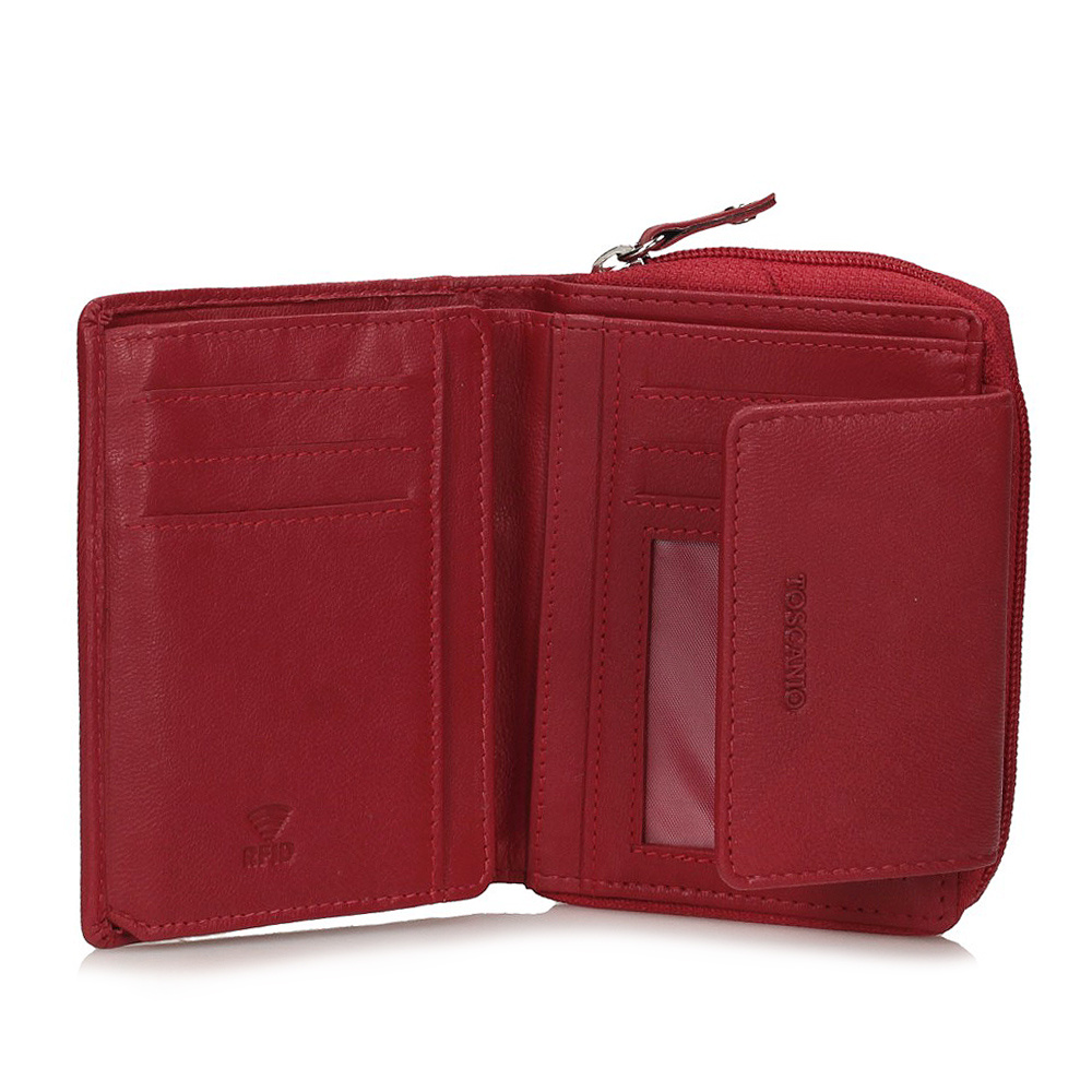 Portfel wykonany z naturalnej, włoskiej skóry, wyposażony w dwie główne komory, jedna z nich