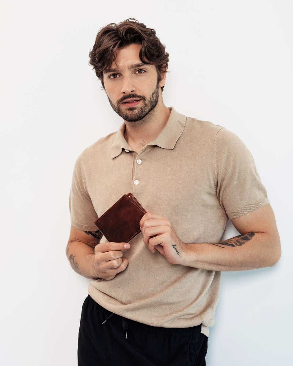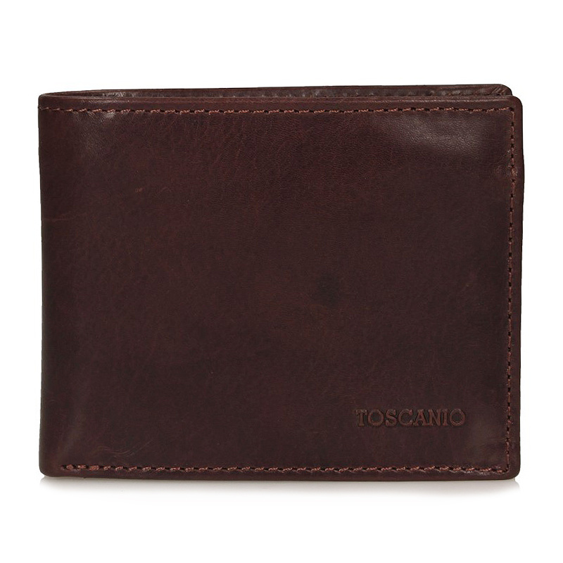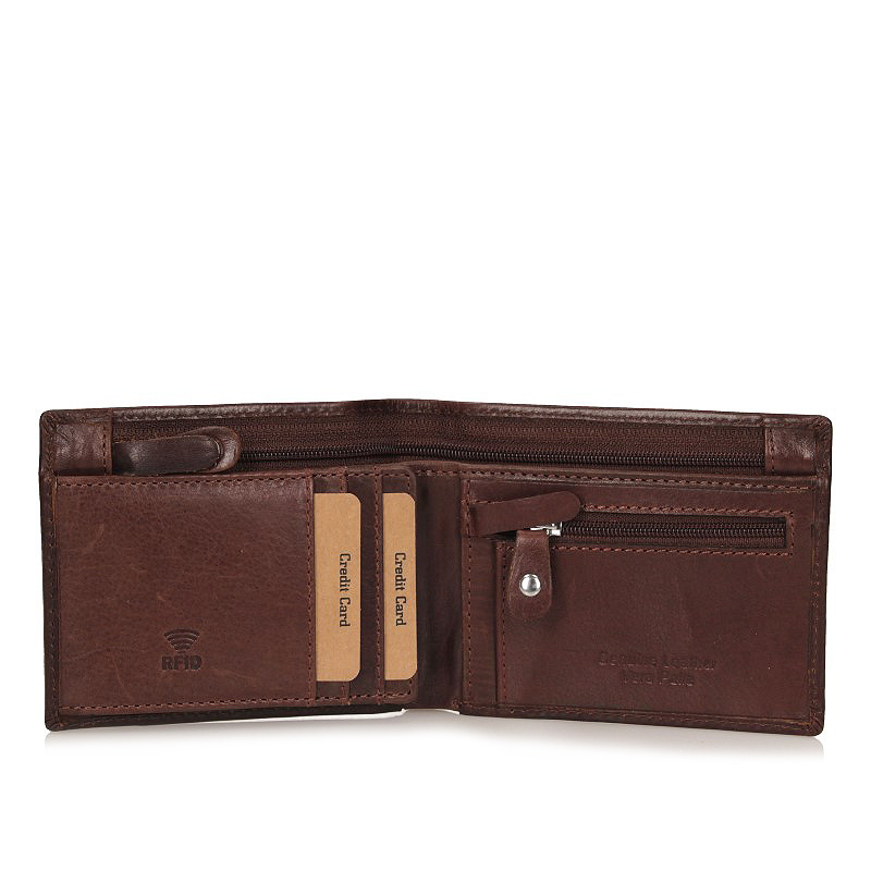 Męski portfel wykonany z naturalnej, włoskiej skóry, wyposażony w dwie kieszonki na zamek, kilka