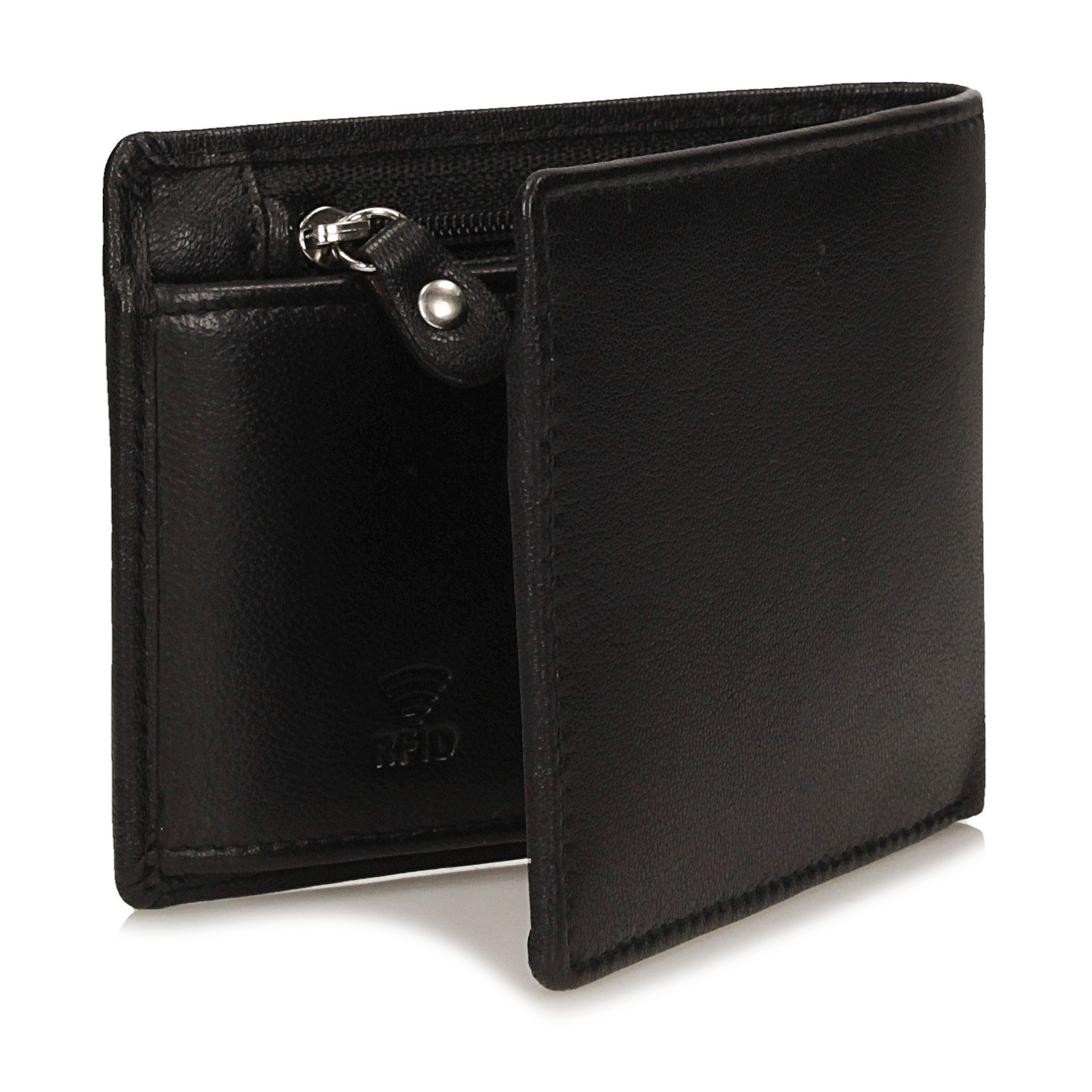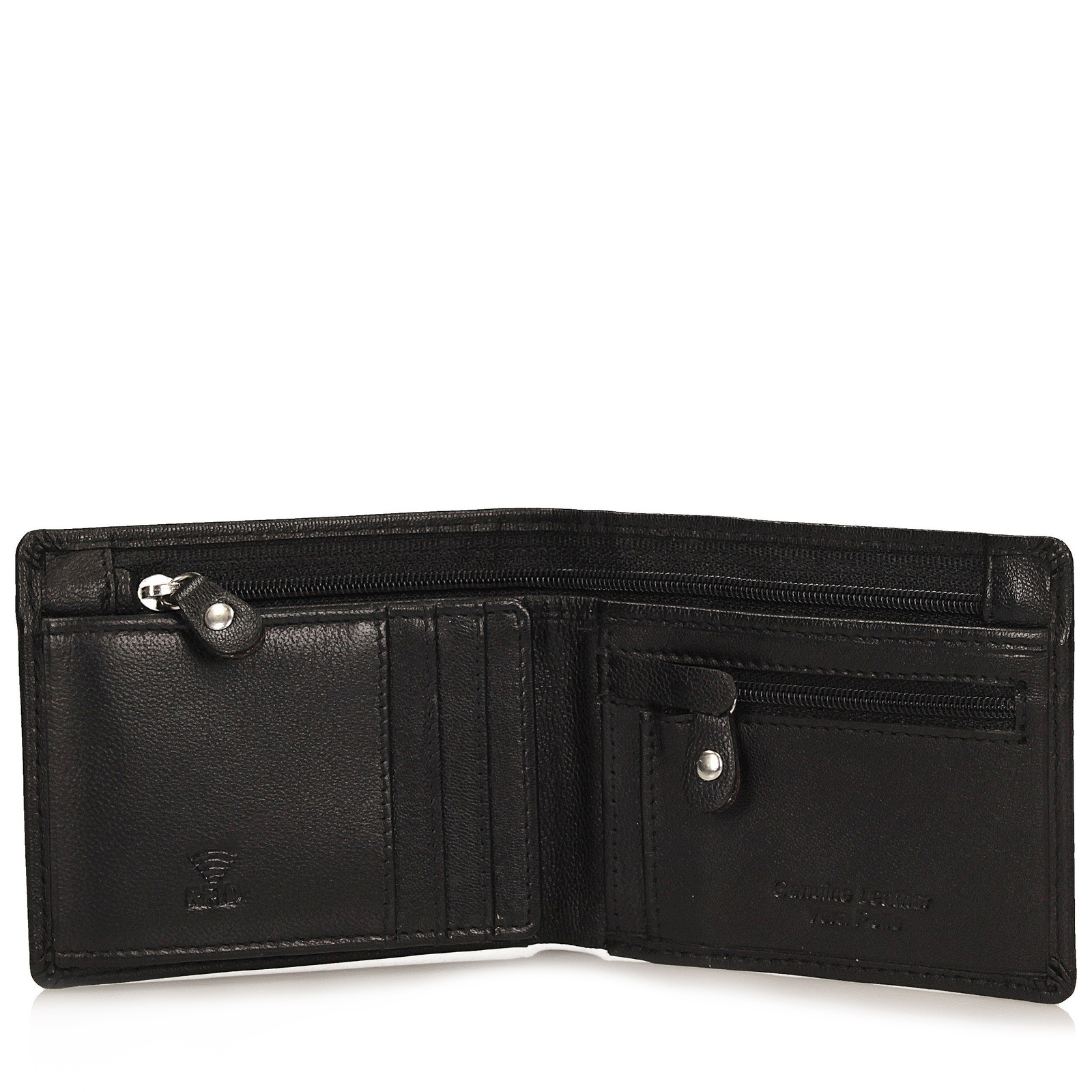 Męski portfel wykonany z naturalnej, włoskiej skóry, wyposażony w dwie kieszonki na zamek, kilka