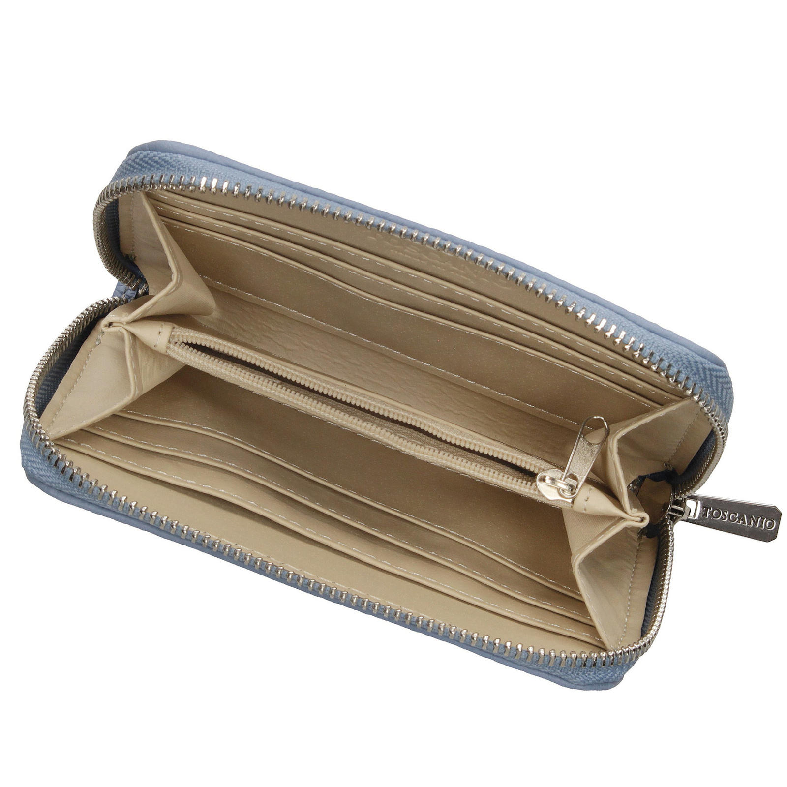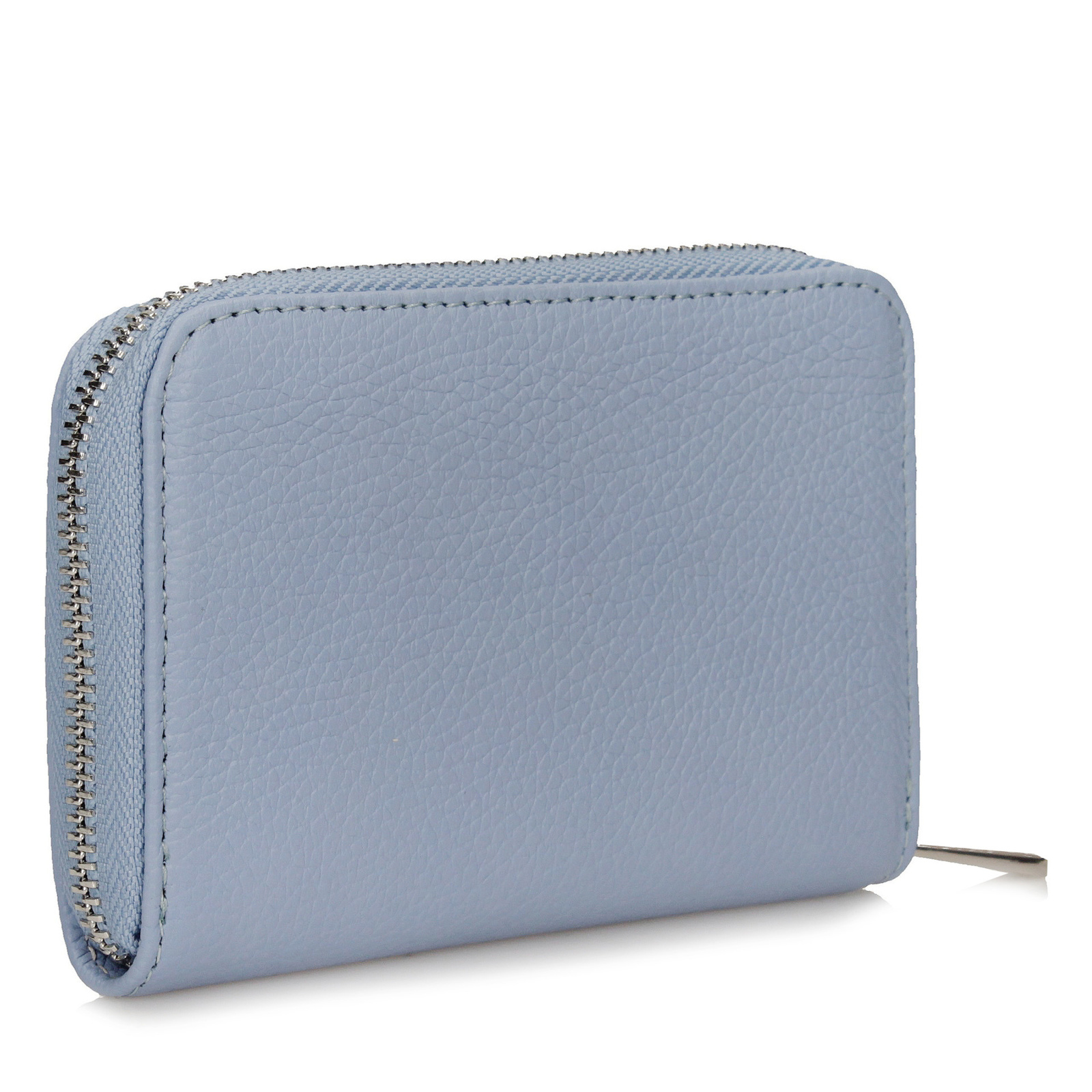 Portfel wykonany z naturalnej, groszkowej skóry, wyposażony w jedną komorę, zamykaną za pomocą