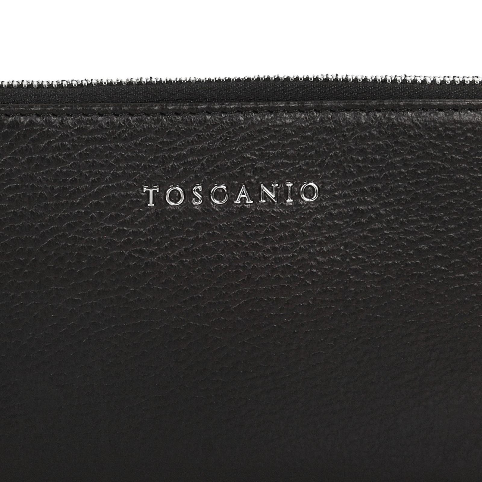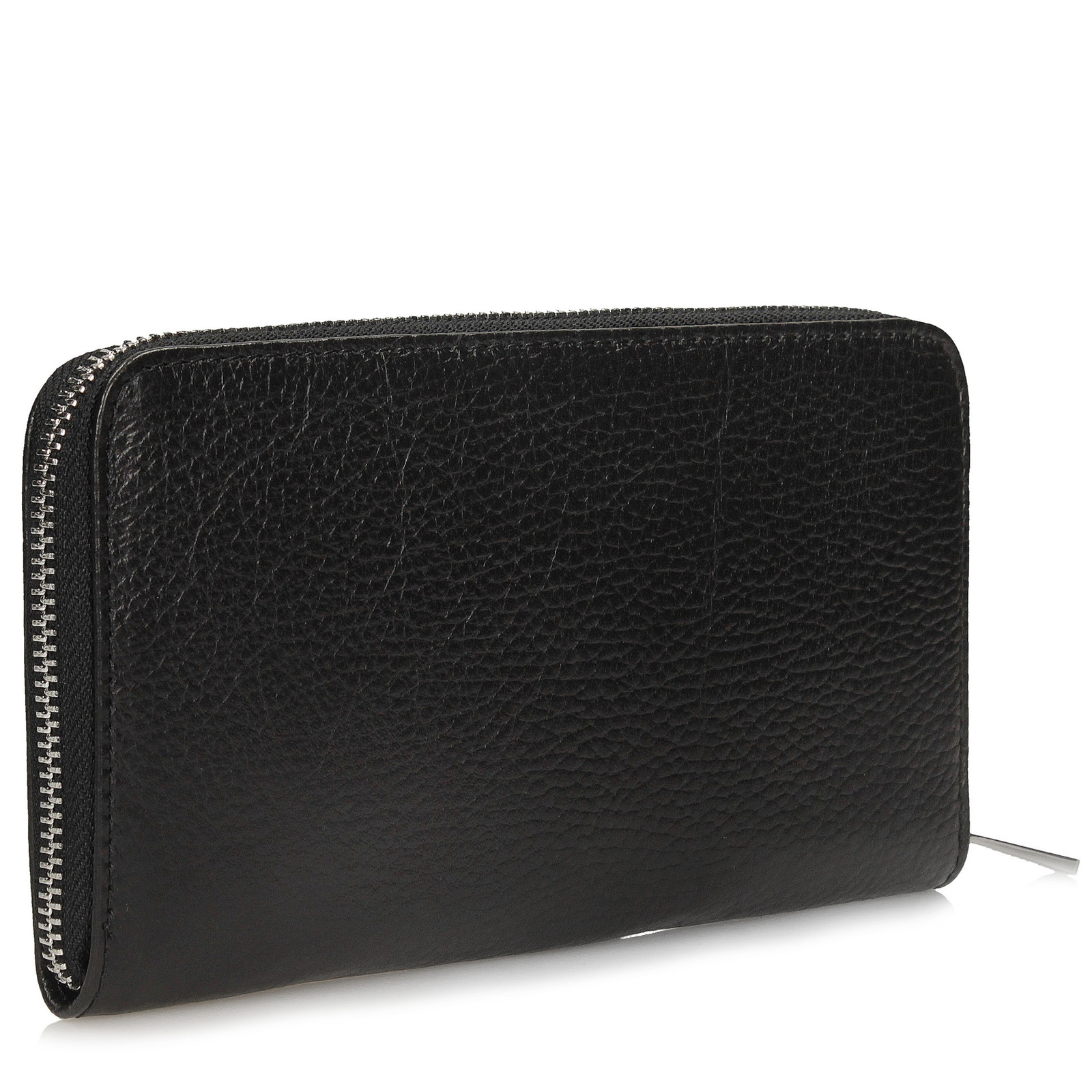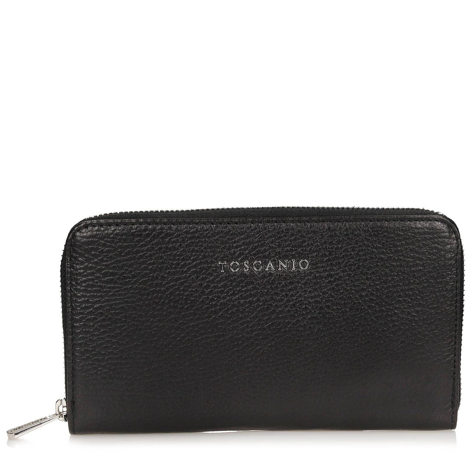 Portfel wykonany z naturalnej, groszkowej skóry, wyposażony w jedną komorę, zamykaną za pomocą