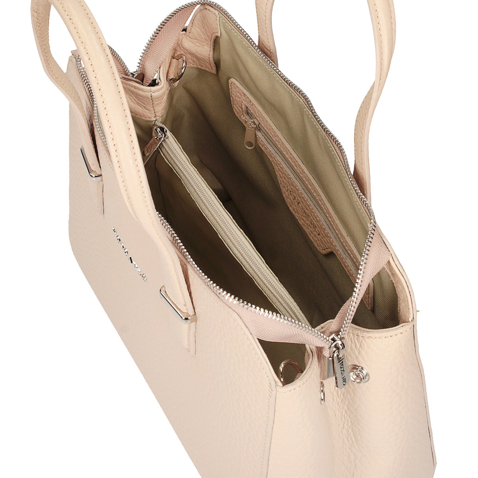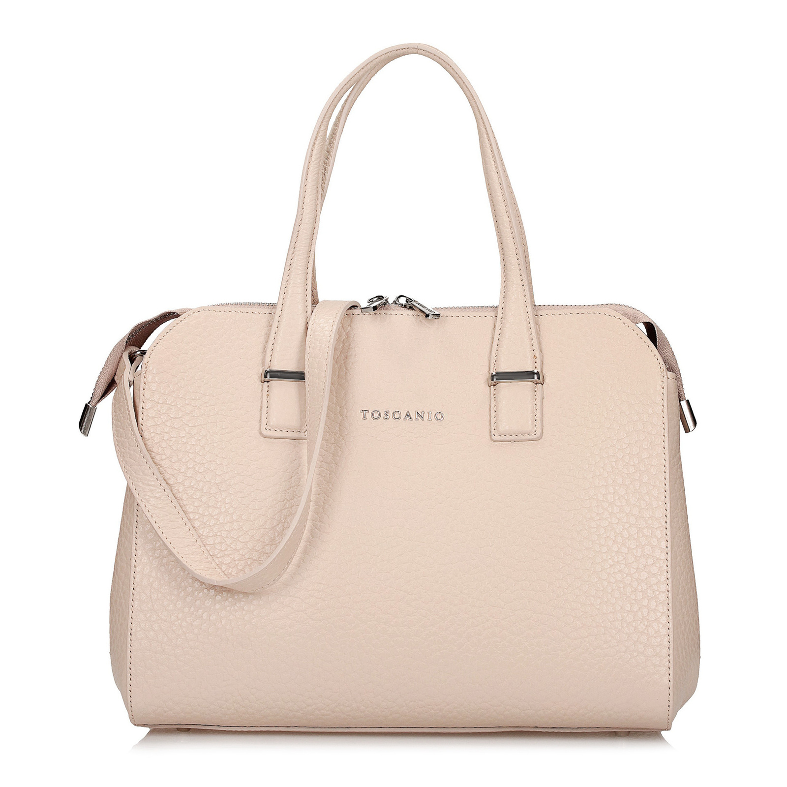 Różowa torebka Toscanio w klasycznym fasonie to doskonała propozycja dla kobiet ceniących ponadczasowy styl i wysoką jakość wykonania. Model został uszyty z miękkiej, naturalnej skóry licowej o groszkowej fakturze, która pięknie układa się w noszeniu i dodaje torebce szlachetnego charakteru. Dwie komory zamykane na zamek zapewniają dobrą organizację, a dodatkowe kieszenie wewnętrzne ułatwiają przechowywanie drobiazgów. Torebkę można nosić w dłoni, na ramieniu lub przez ramię – dzięki wygodnym uchwytom oraz regulowanemu, skórzanemu paskowi o długości 125 cm. Srebrne detale dodają elegancji, a funkcjonalny format idealnie sprawdzi się na co dzień, bez konieczności rezygnacji ze stylu.