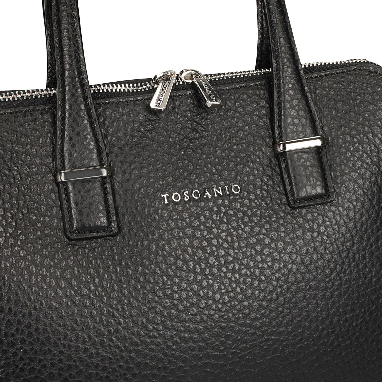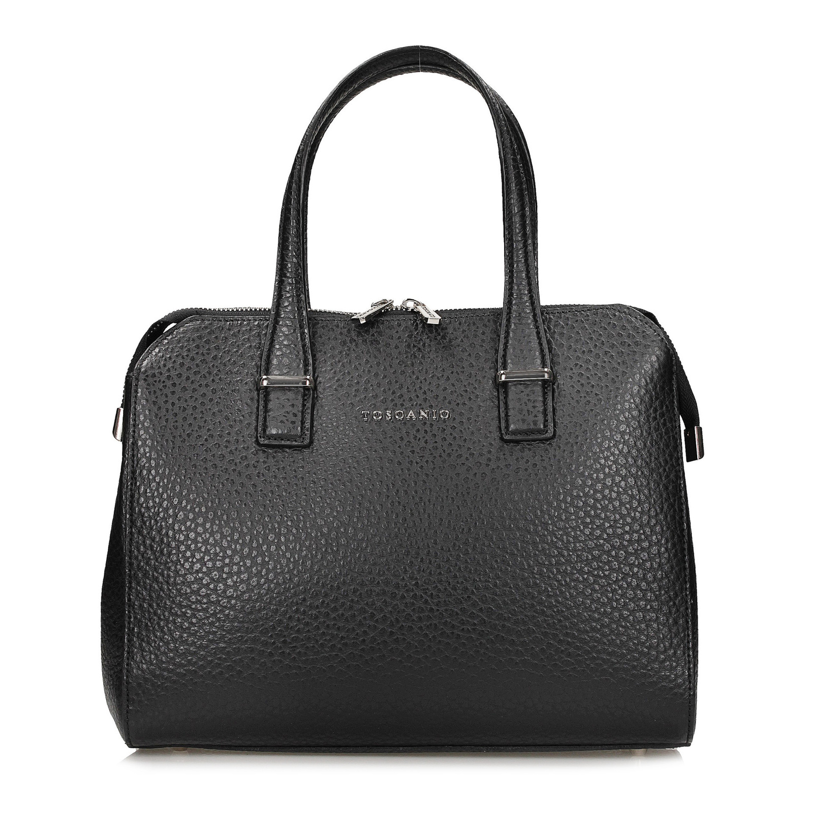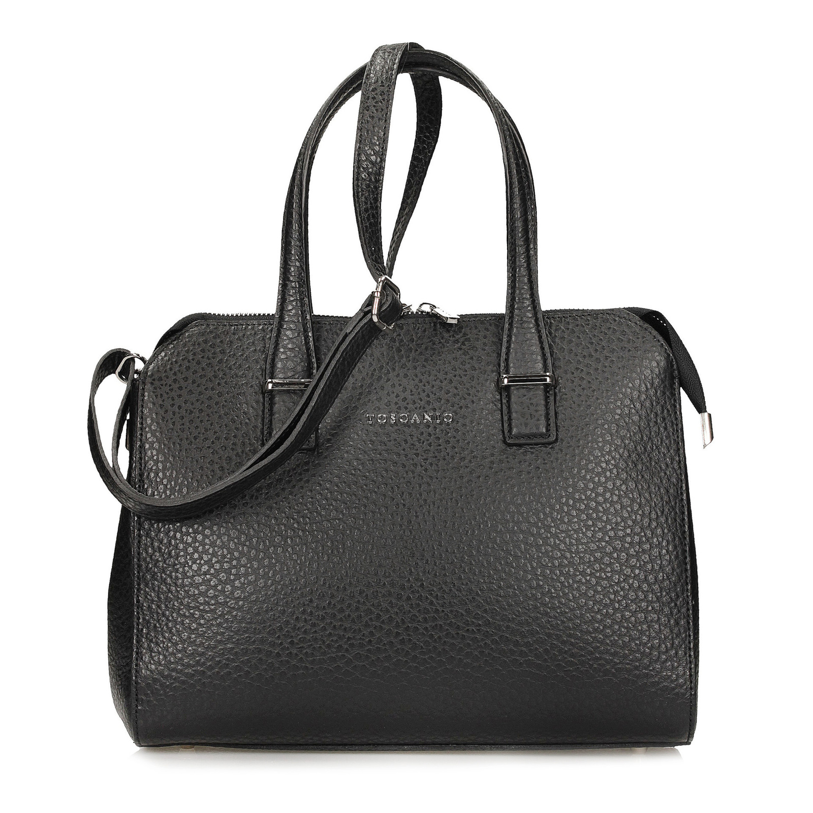 Czarna klasyczna torebka marki Toscanio to elegancki dodatek wykonany z wysokiej jakości naturalnej skóry licowej o groszkowej fakturze. Jej ponadczasowy fason i uniwersalny kolor doskonale uzupełnią zarówno biurowe stylizacje, jak i codzienne zestawy.