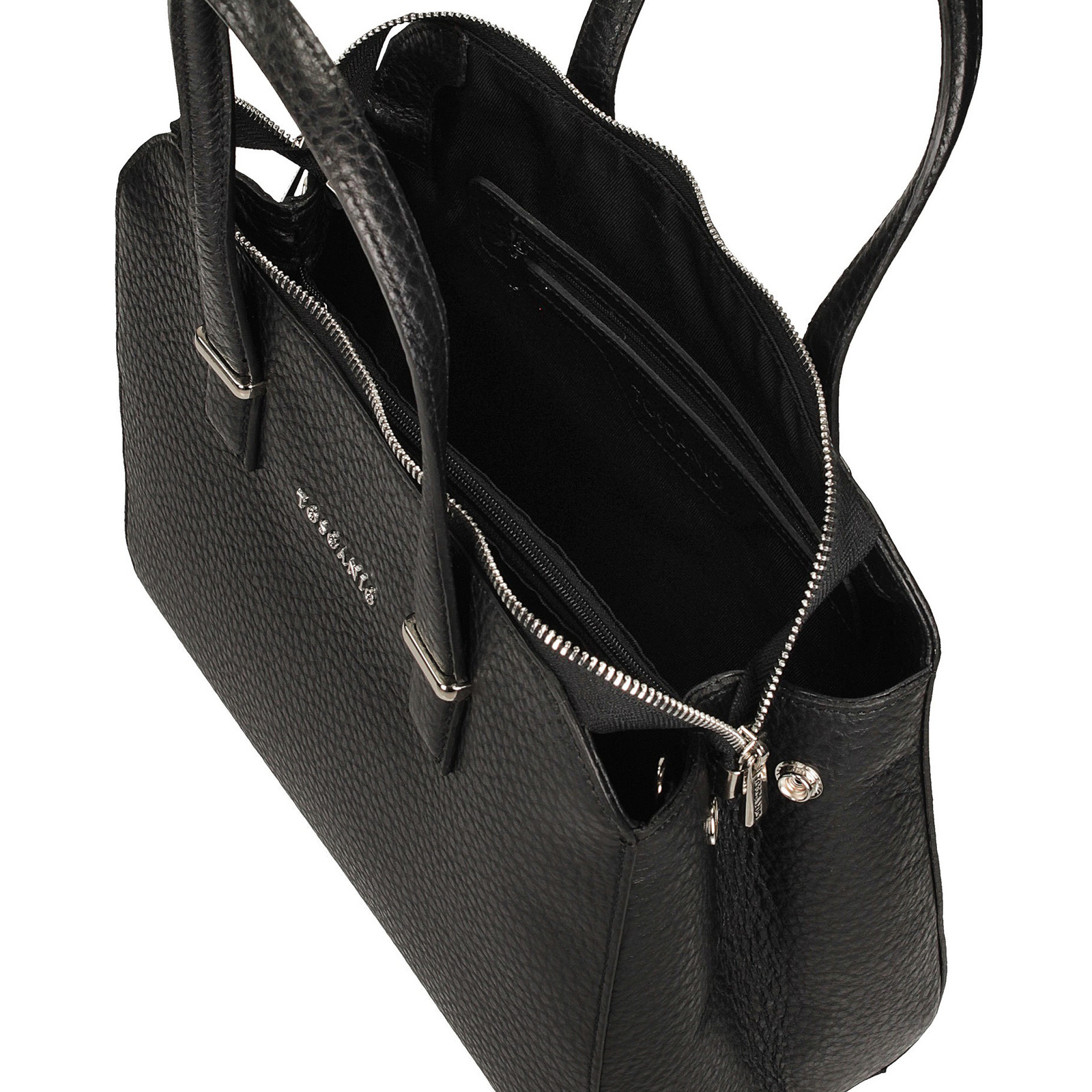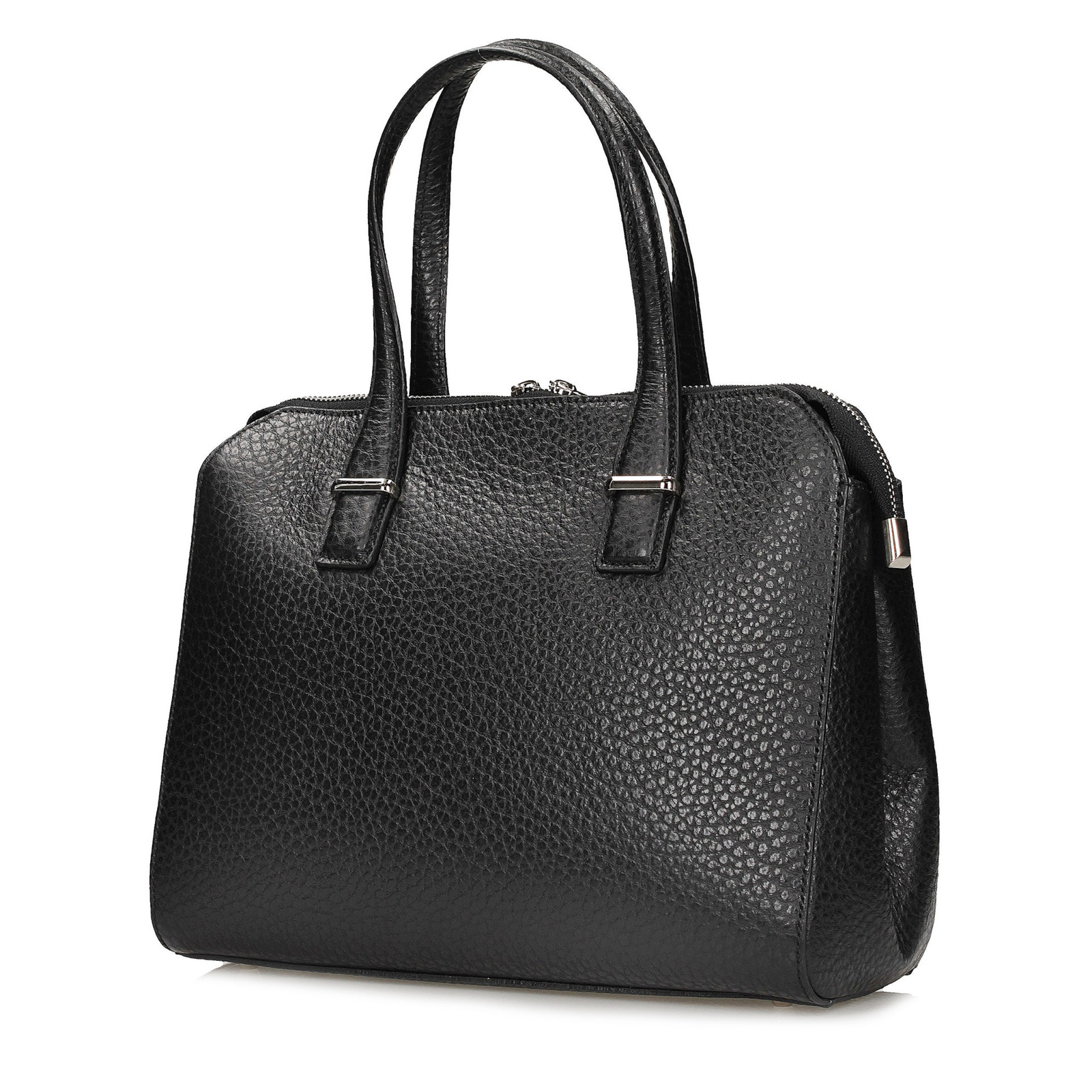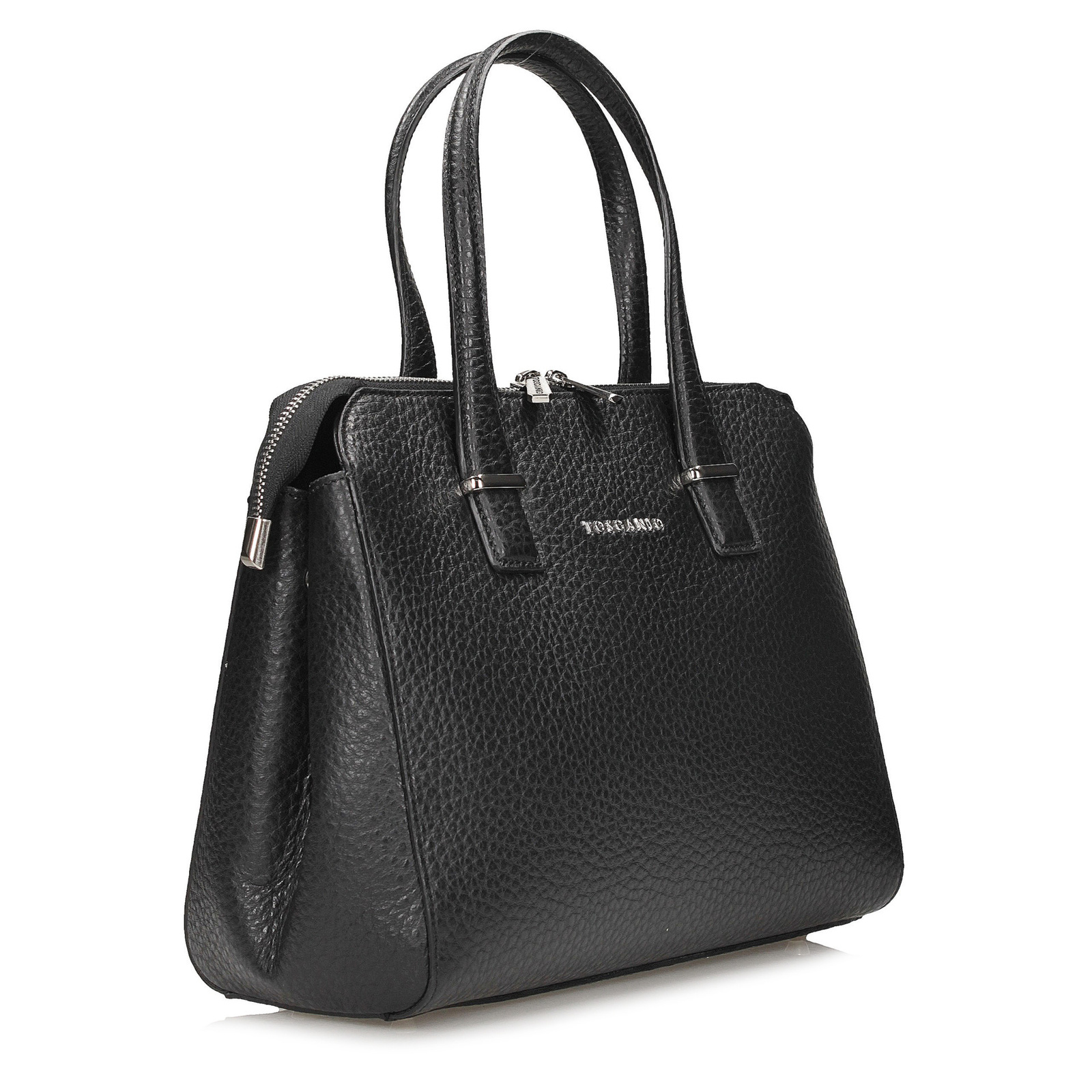 Czarna klasyczna torebka marki Toscanio to elegancki dodatek wykonany z wysokiej jakości naturalnej skóry licowej o groszkowej fakturze. Jej ponadczasowy fason i uniwersalny kolor doskonale uzupełnią zarówno biurowe stylizacje, jak i codzienne zestawy.