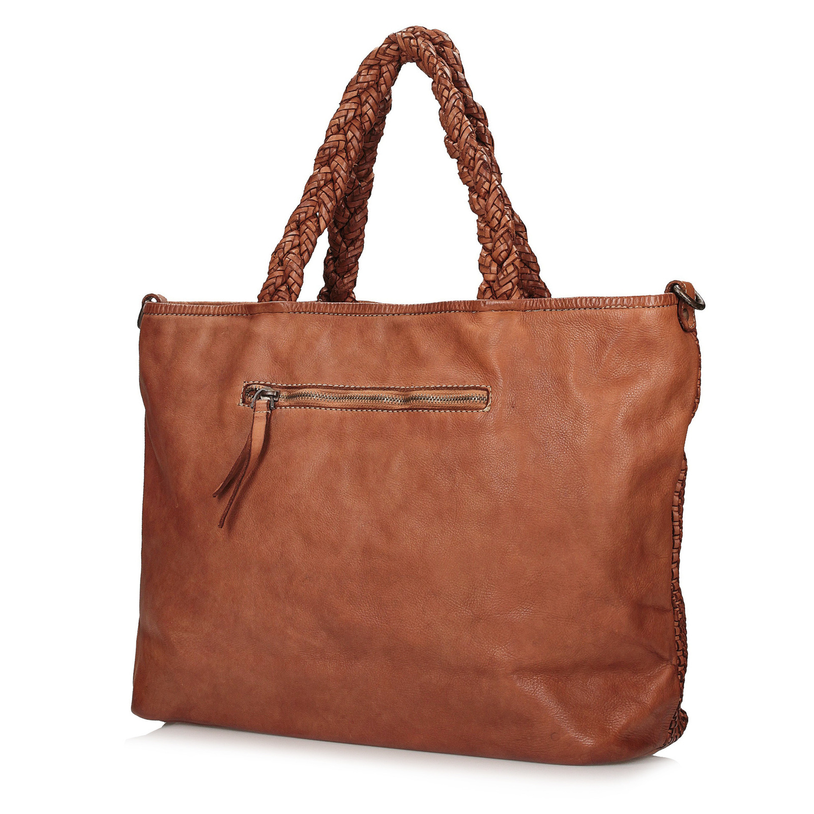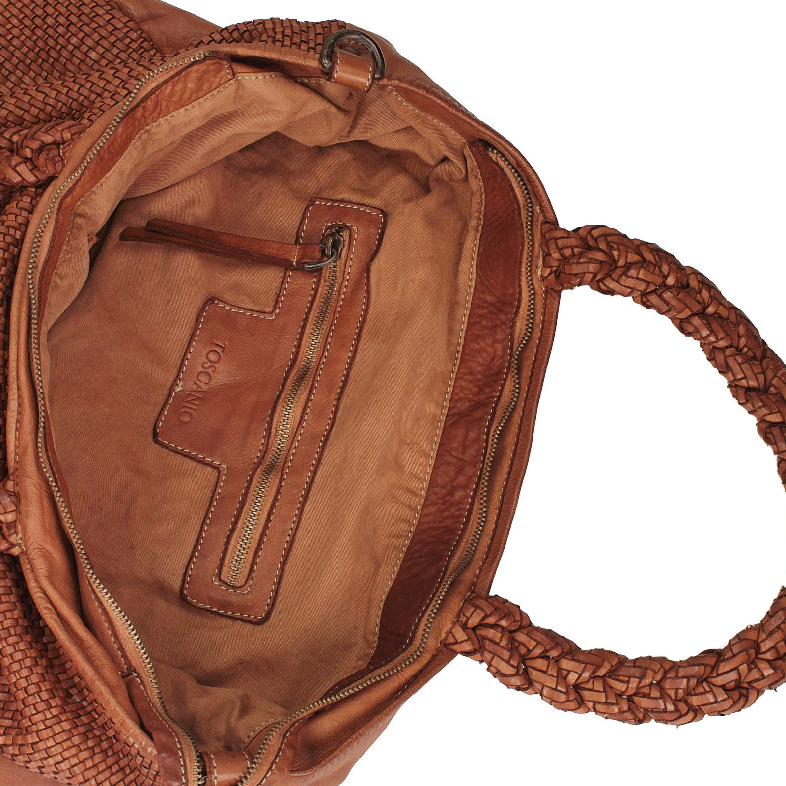 Duża shopperka Toscanio wykonana z miękkiej, naturalnej skóry licowej w rudym kolorze, wyróżnia się elegancką, plecioną fakturą na całej powierzchni. Praktyczna forma o wymiarach 38 × 32 × 15 cm z łatwością pomieści format A4, co czyni ją idealną torebką do pracy, na uczelnię czy na co dzień. Model wyposażony jest w jedną główną komorę zamykaną na zamek, trzy kieszenie wewnętrzne oraz jedną zewnętrzną. W zestawie znajduje się regulowany, skórzany pasek o długości 130 cm oraz wygodne uszy o długości 40 cm, umożliwiające noszenie torebki w ręku lub na ramieniu. Całość dopełniają złote detale, nadające torebce ponadczasowego szyku.